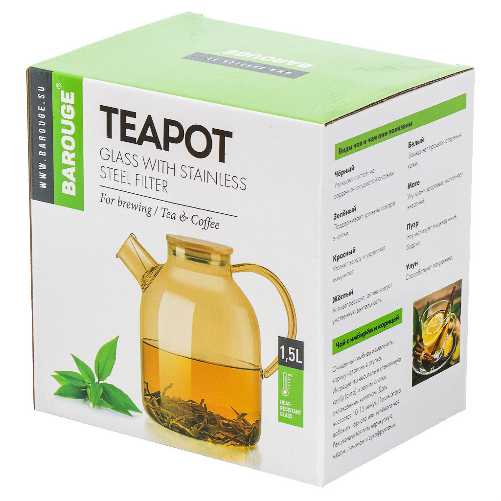 Заварочный чайник стеклянный с фильтр-пружиной, 1500 мл (BF-515) интересное: