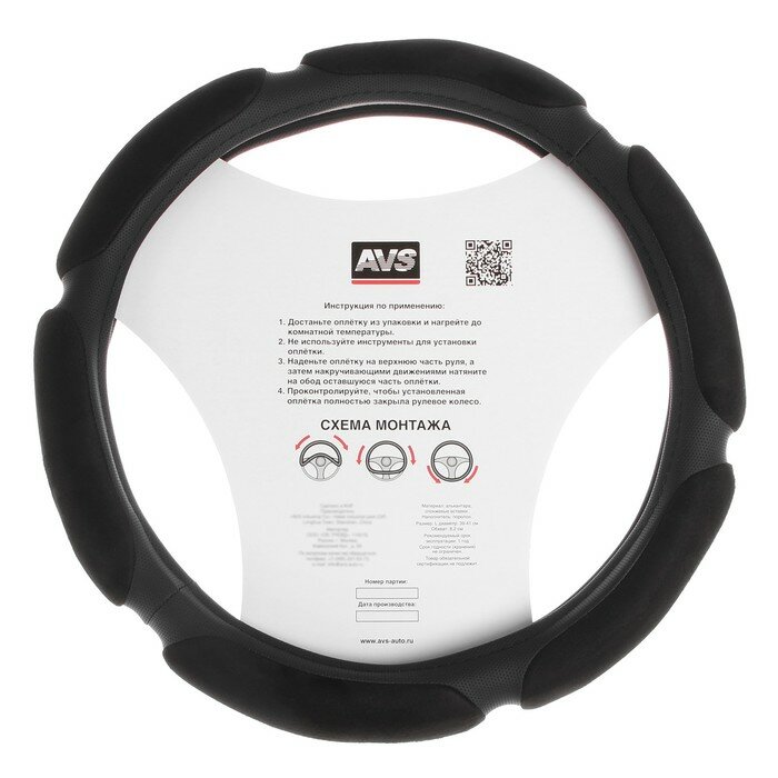 AVS A07057S Оплетка на руль L "AVS" эко-кожа/алькантара, черный (объемные спонжевые вставки )