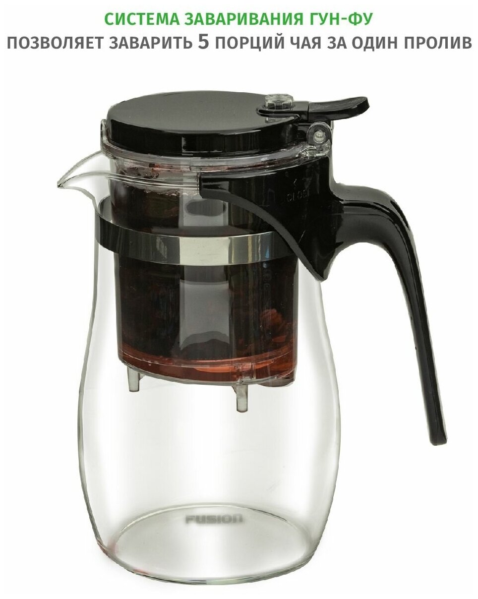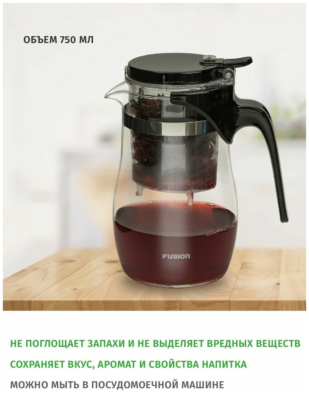 Чайник заварочный стеклянный FUSION 02-075-03, заварник с кнопкой, 750мл интересное:
