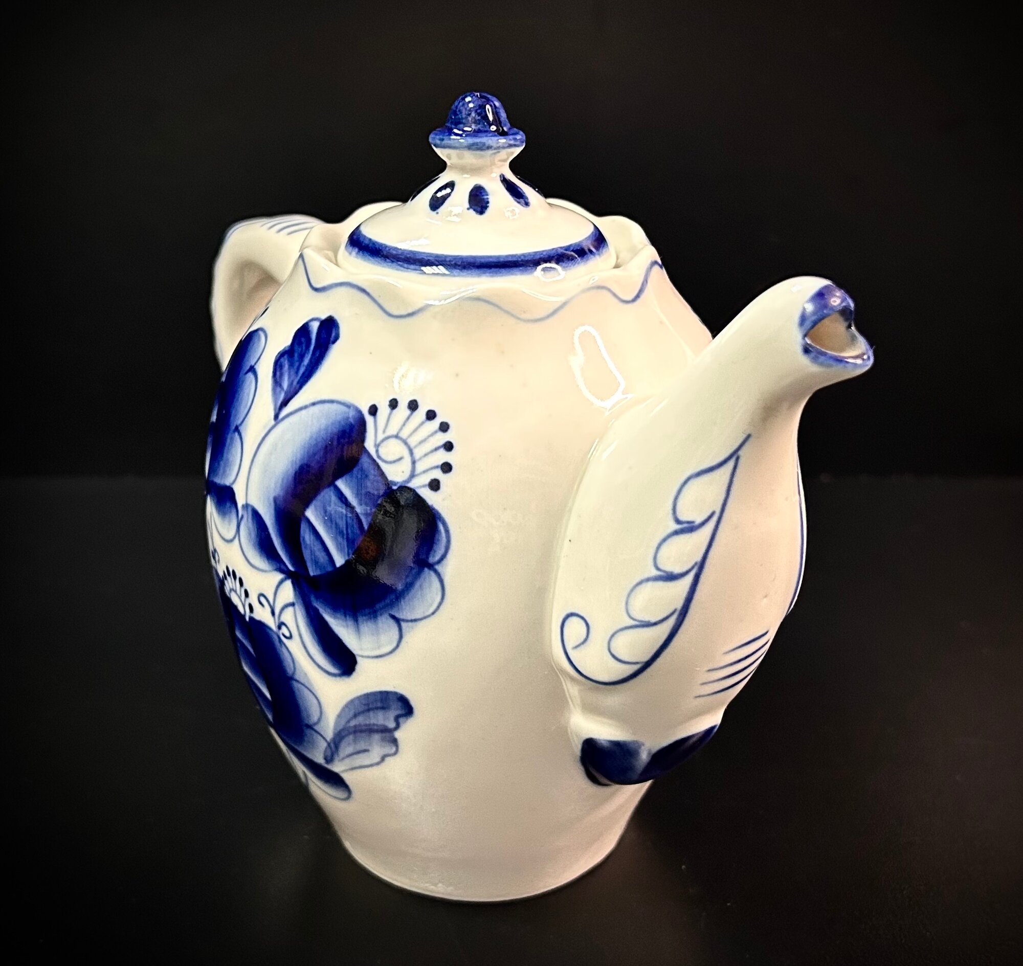 Чайник заварочный "Гжель", фарфор, винтаж, ручная роспись, СССР интересное: