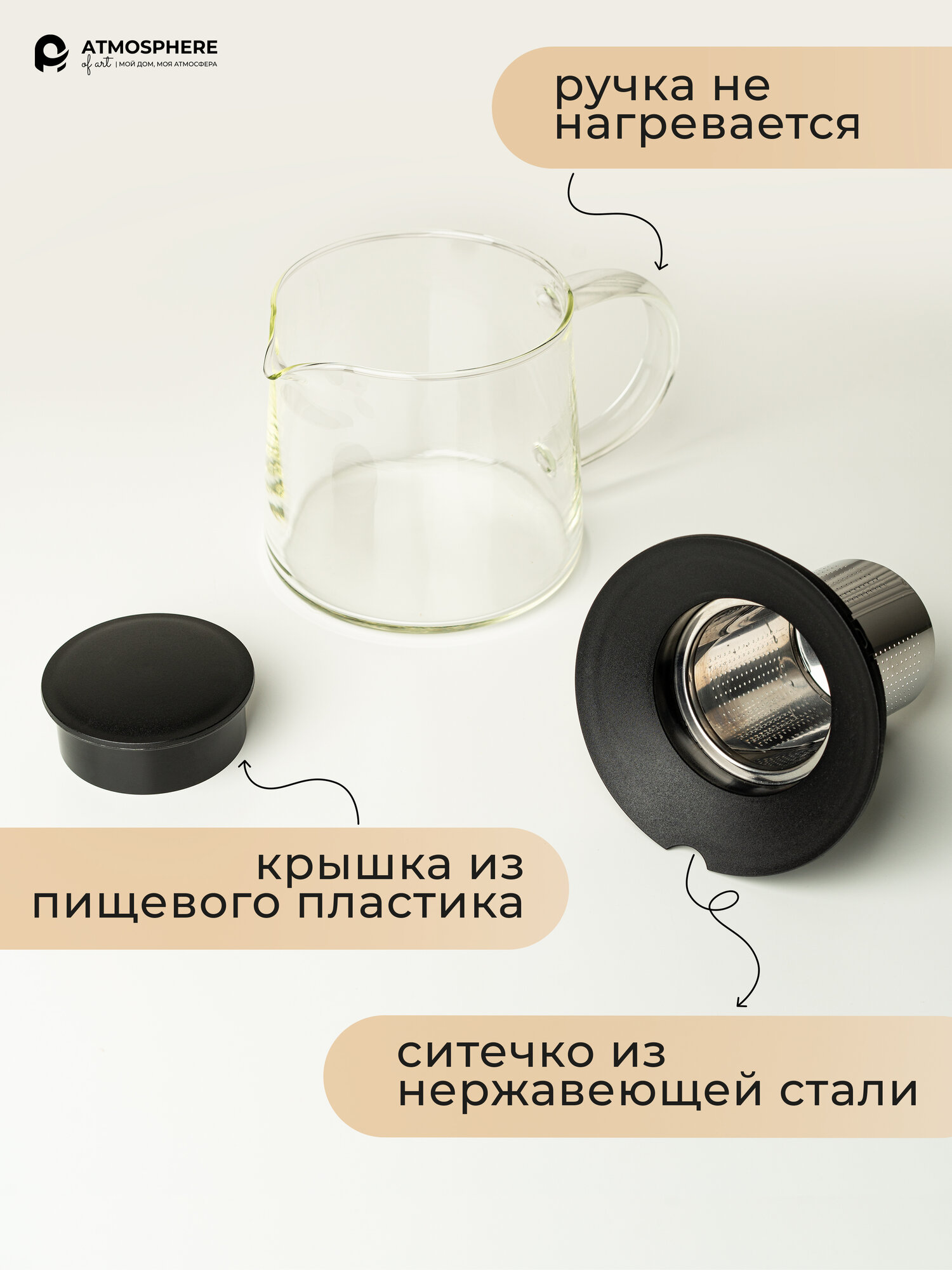 Чайник заварочный Atmosphere of Art "Nordic" - стекло, черный, 0.8л интересное: