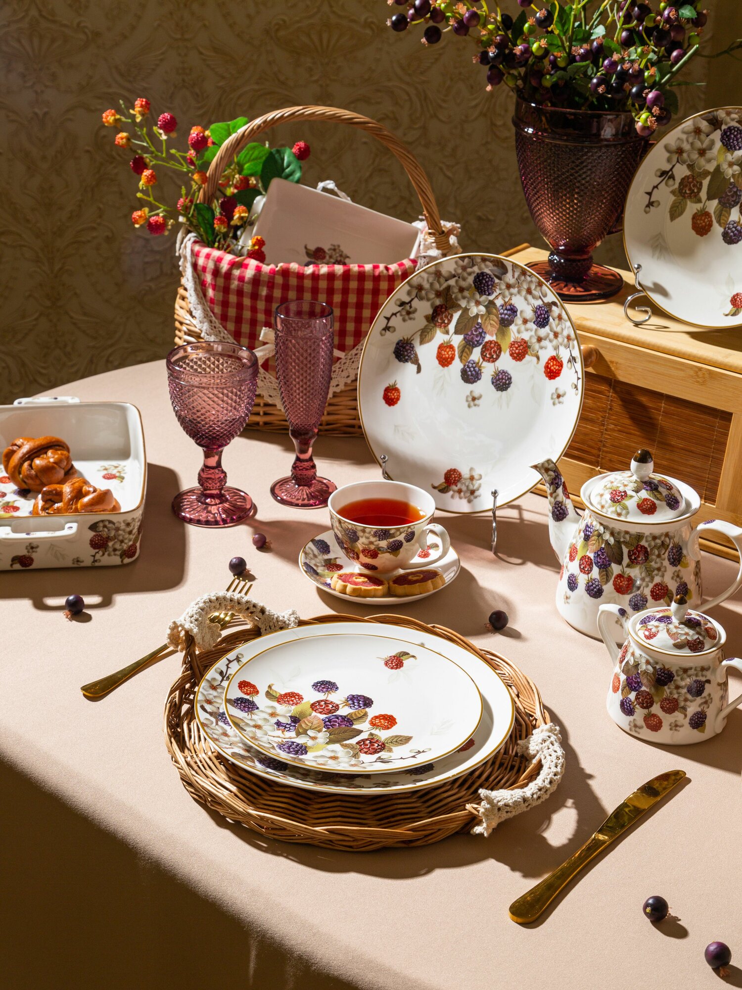 Чайник заварочный Lefard "Ежевика", 900 мл, фарфоровый, с рисунком
