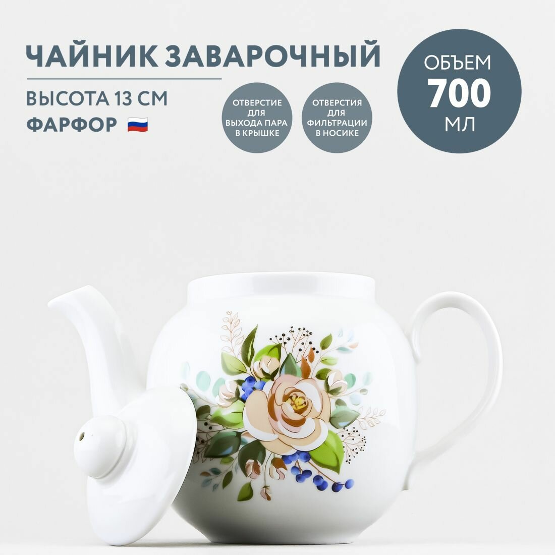 Чайник заварочный фарфоровый 700 мл Дулевский фарфор Розалия интересное:
