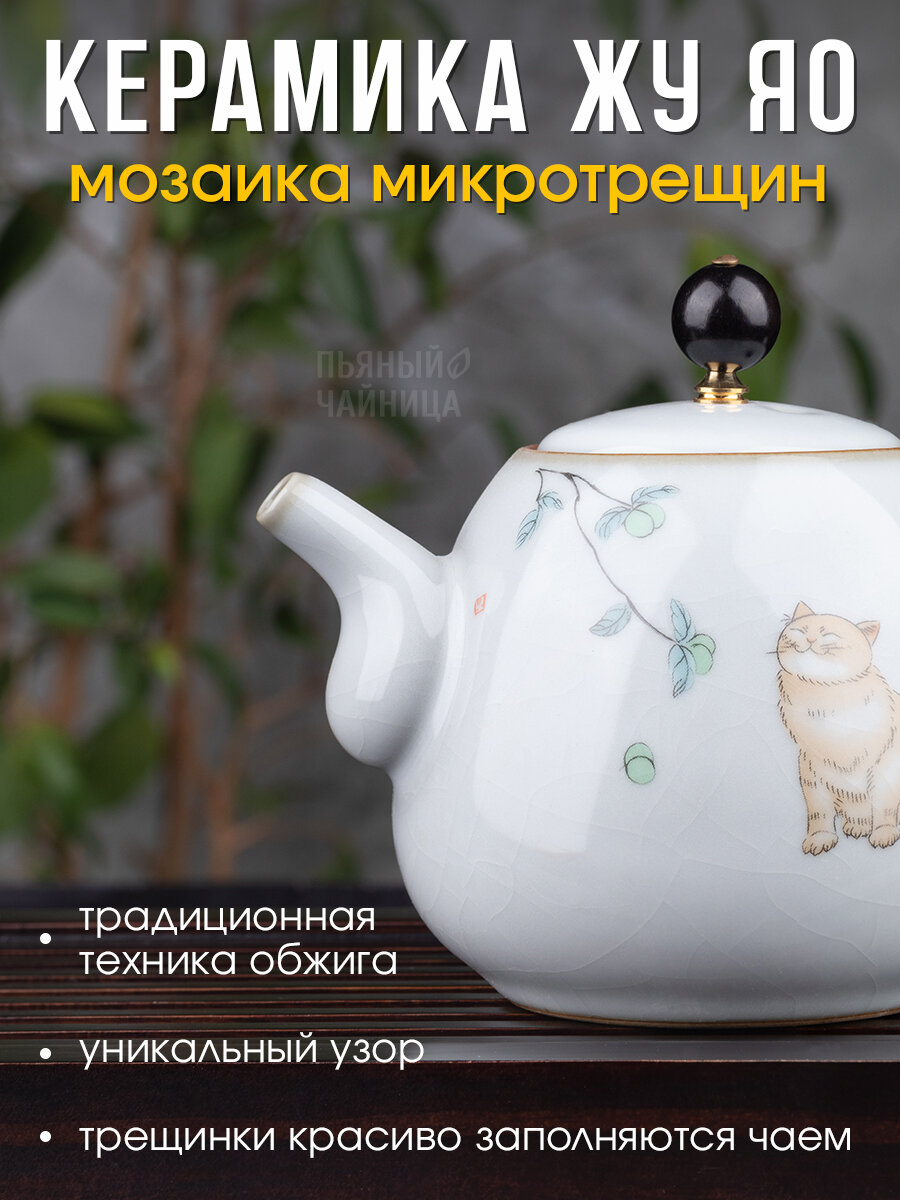 Чайник заварочный керамический "Котик хулиганит" 280 мл. для китайской чайной церемонии интересное: