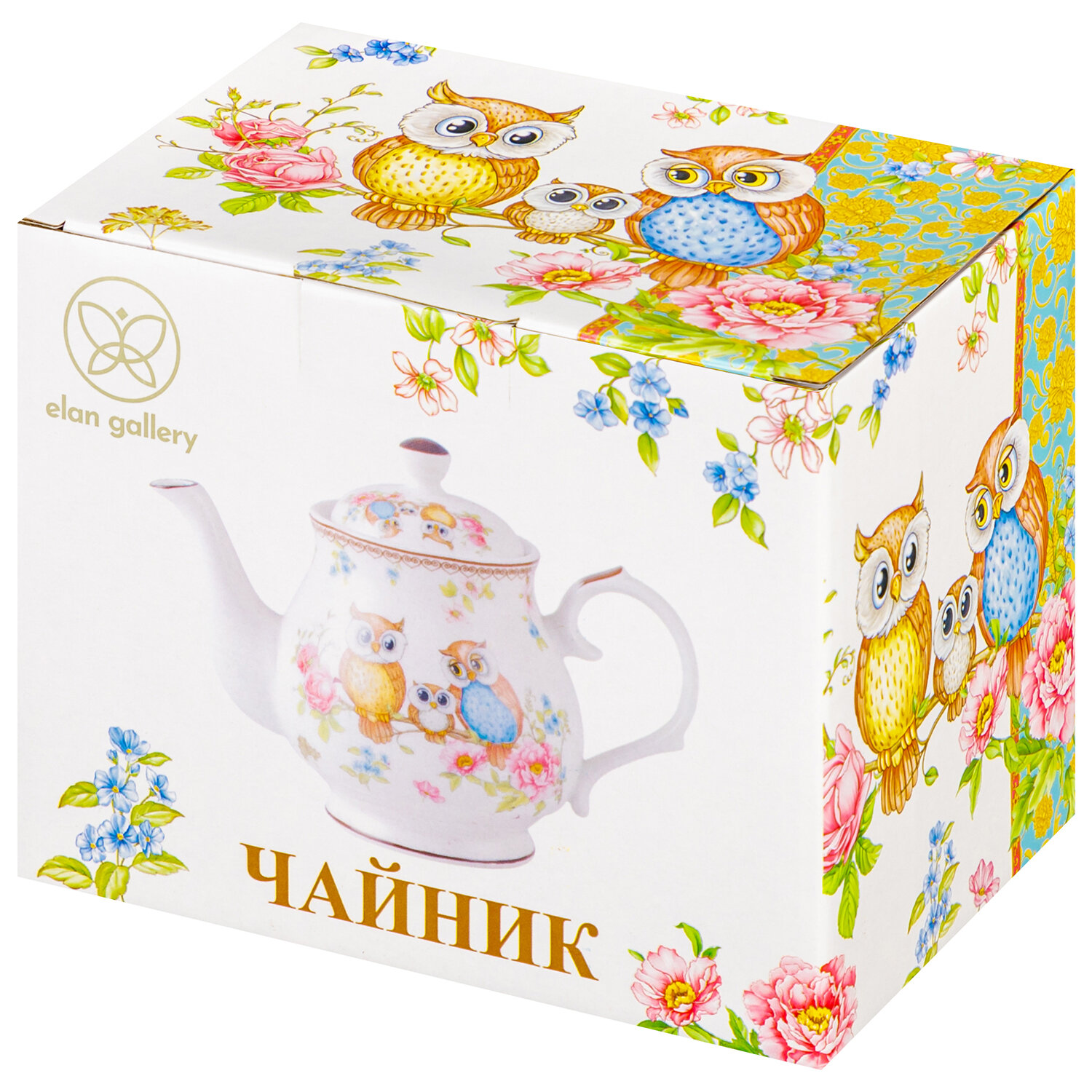 Купить Чайник заварочный 380 мл Elan Gallery Совушки, 17х10х12 см, фарфор