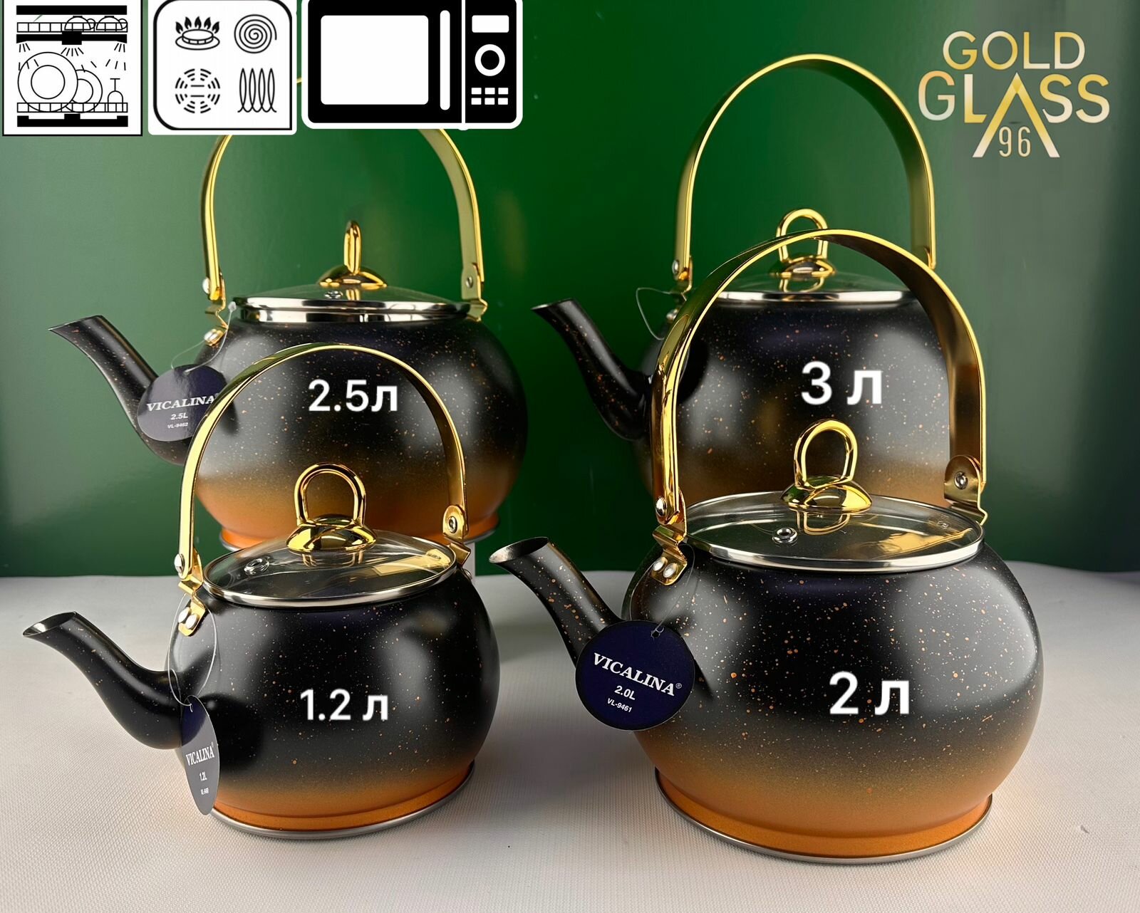 СохранитьЗаварочный чайник из нержавеющей стали Vicalina 2,5 л, Посуда Мира, Чёрный интересное:
