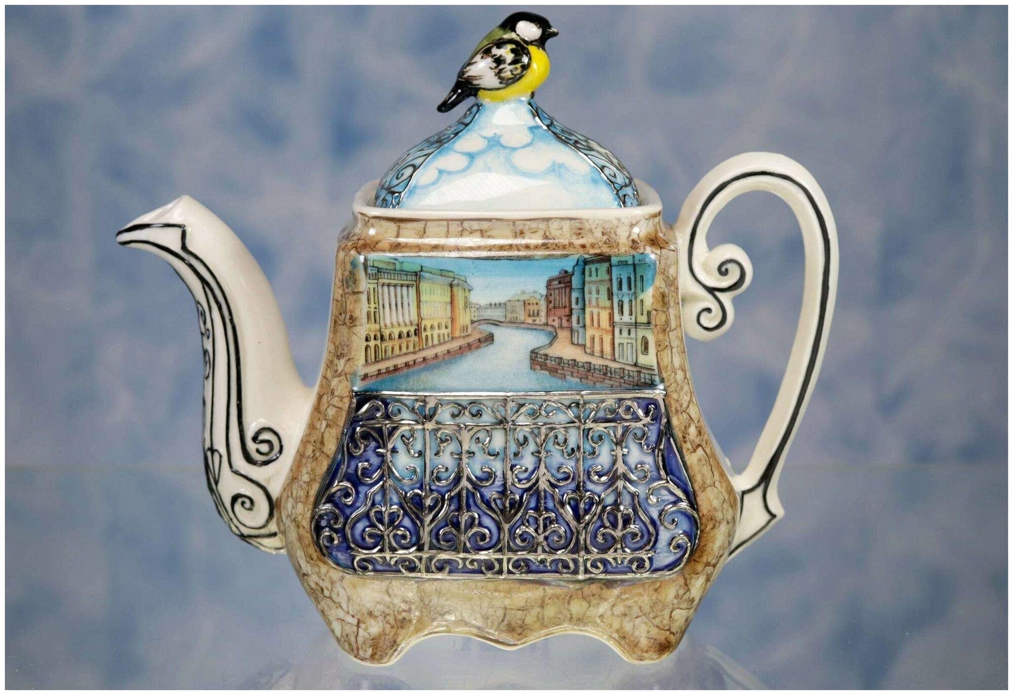 Купить Чайник заварочный фарфоровый "Городская романтика", 650 мл, синица