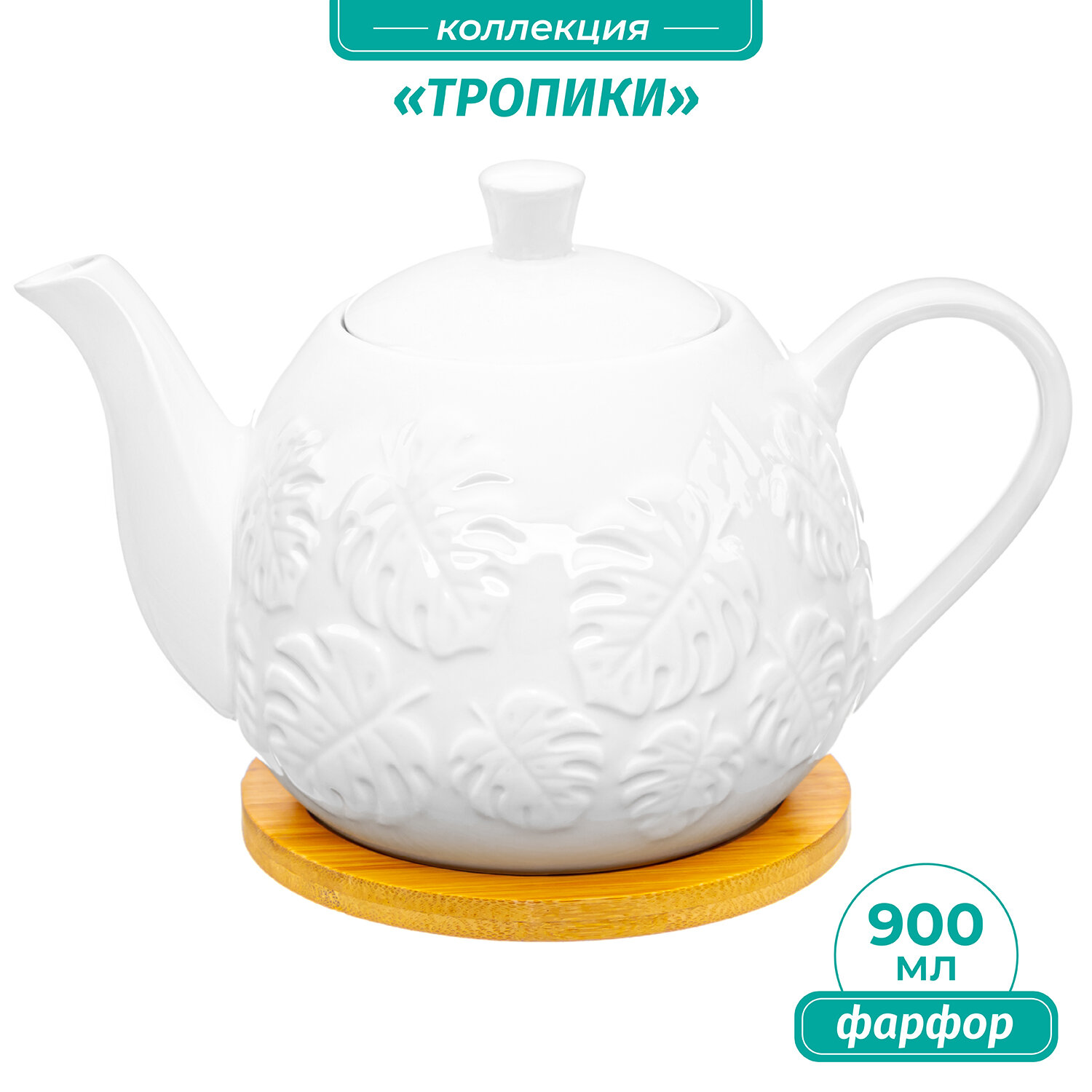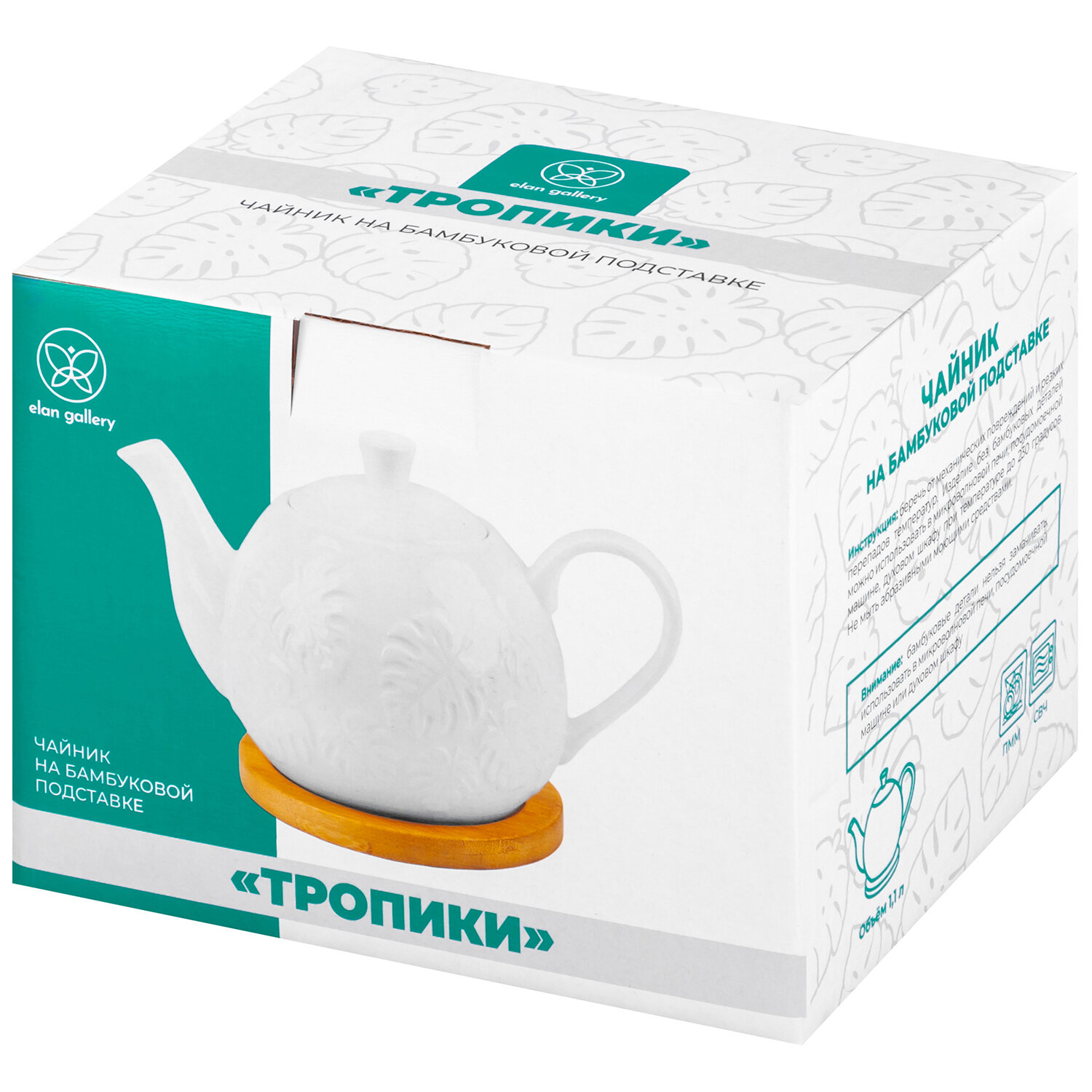 Чайник заварочный 900 мл Elan Gallery Тропики 21,5х13,5х14,5 см, на деревянной подставке интересное: