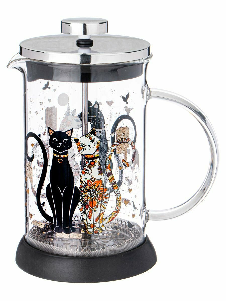 Френч-пресс Agness "Парижские коты", 350 мл, жаропрочное стекло