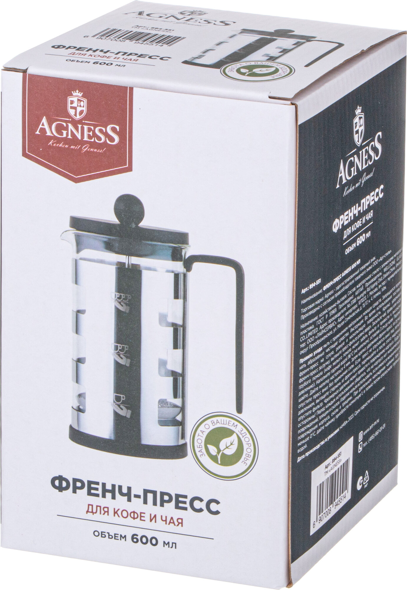 Купить Френч-пресс Agness "Kitchen", жарапрочное стекло, металл, с ручкой, 600 мл