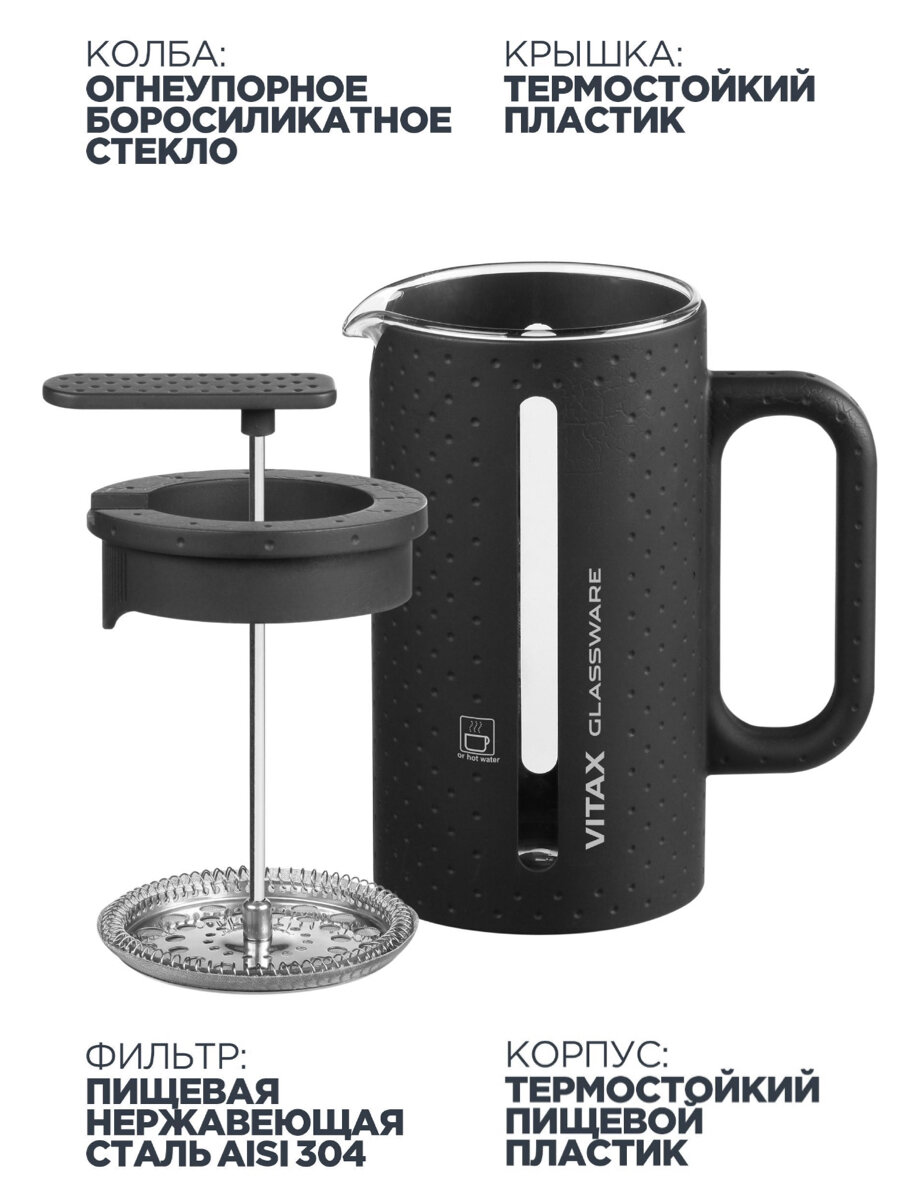 Френч-пресс для заваривания чая и приготовления напитков из молотого кофе. Объём 1000 мл. интересное: