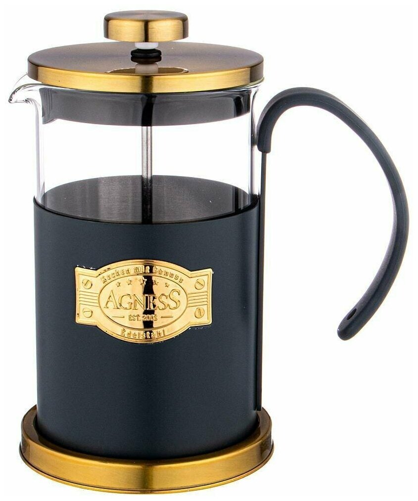 Френч-пресс Agness "Тюдор", объем: 600 мл, стекло, черный, жаропрочный интересное:
