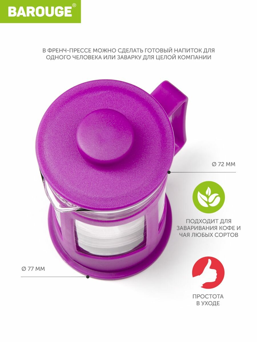 Френч-Пресс Barouge с пластиковым корпусом, цвет фиолетовый, 300 мл интересное: