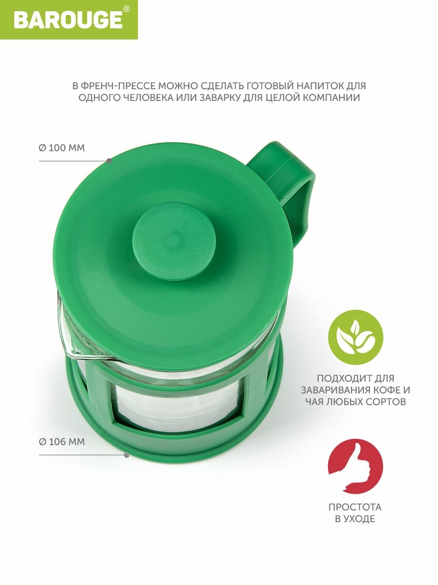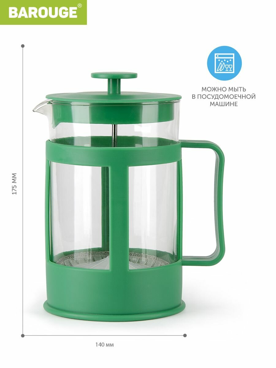 Френч-пресс Barouge с пластиковым корпусом, цвет зеленый, 800 мл интересное: