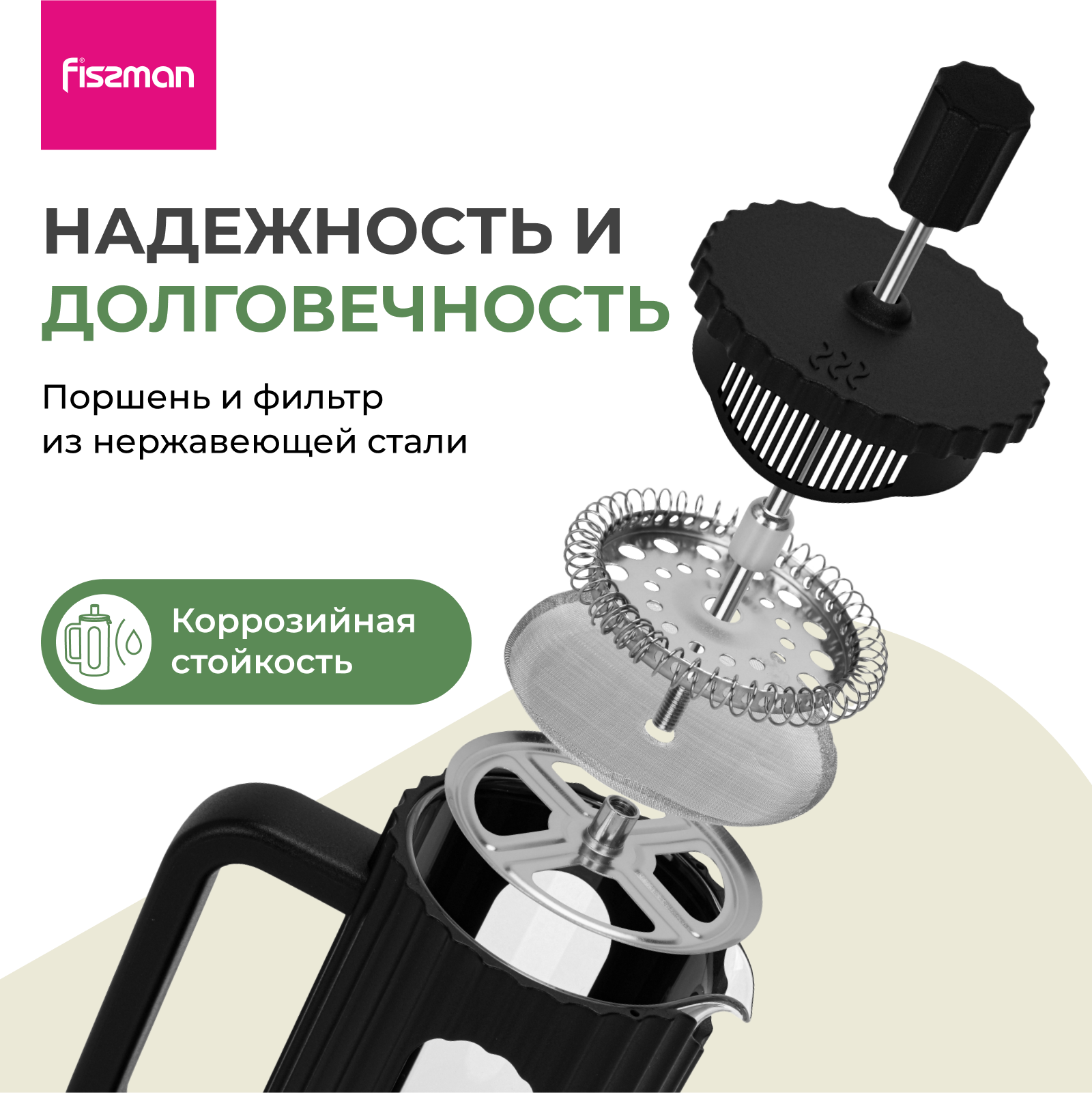Френч-пресс FISSMAN 600 мл, боросиликатное стекло, нержавеющая сталь интересное: