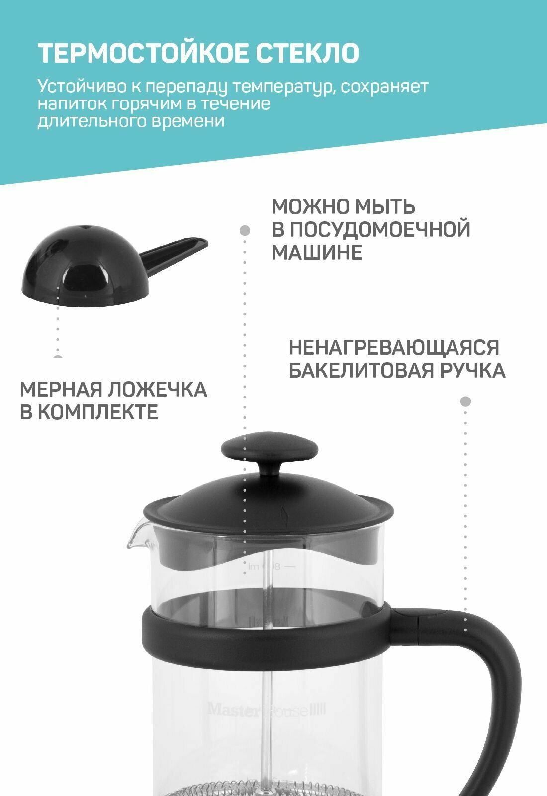 Master House Френч-пресс для кофе и чая Валенсия 800 мл термостойкий интересное: