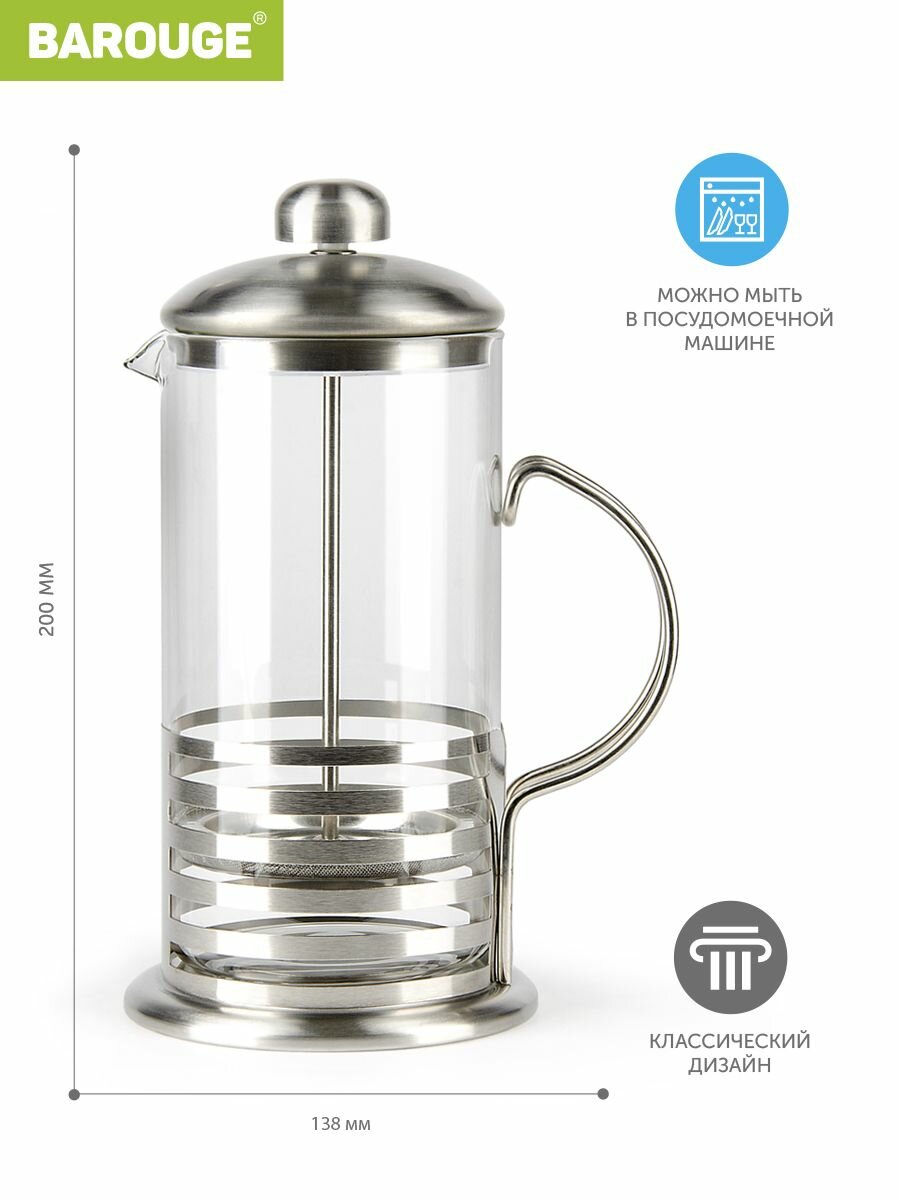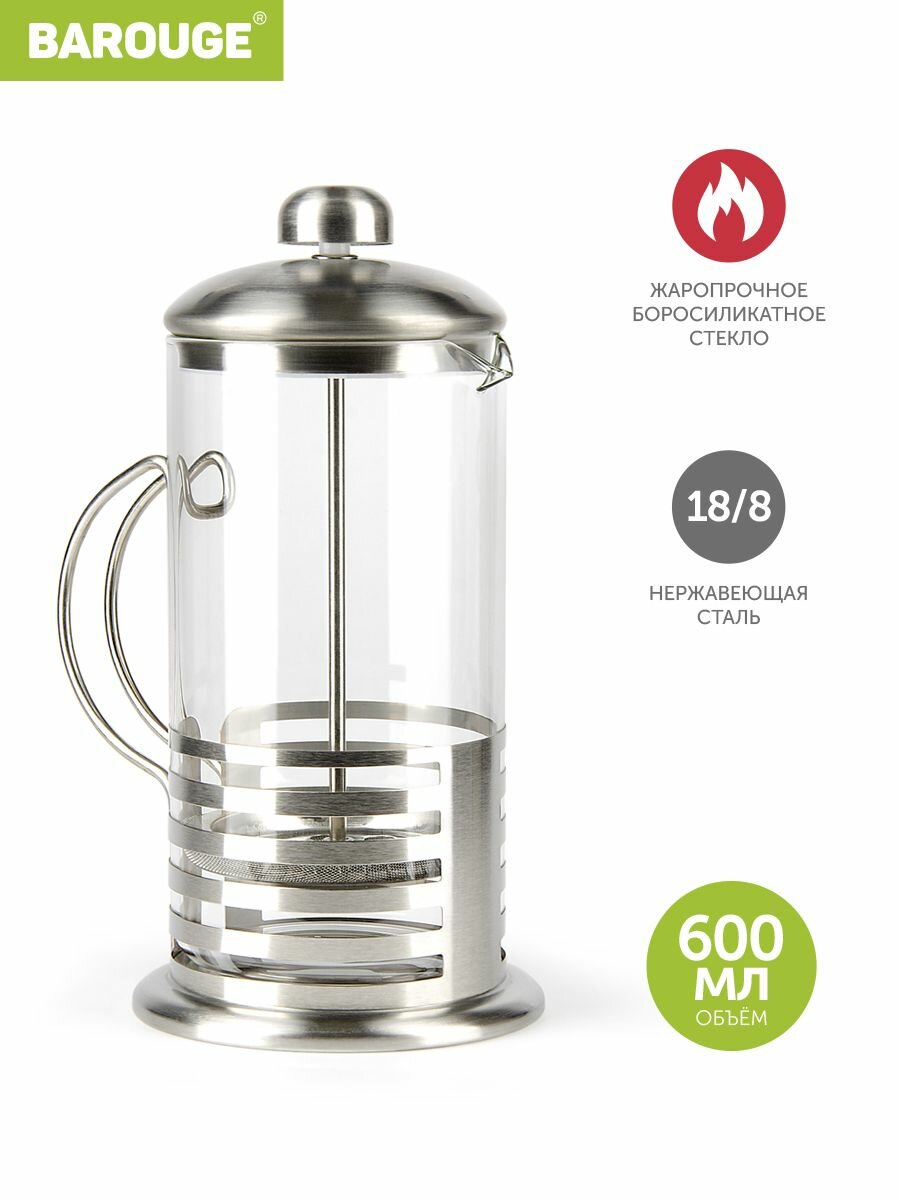 Френч-прессы Barouge линейки Light с металлическим корпусом, 600 мл интересное: