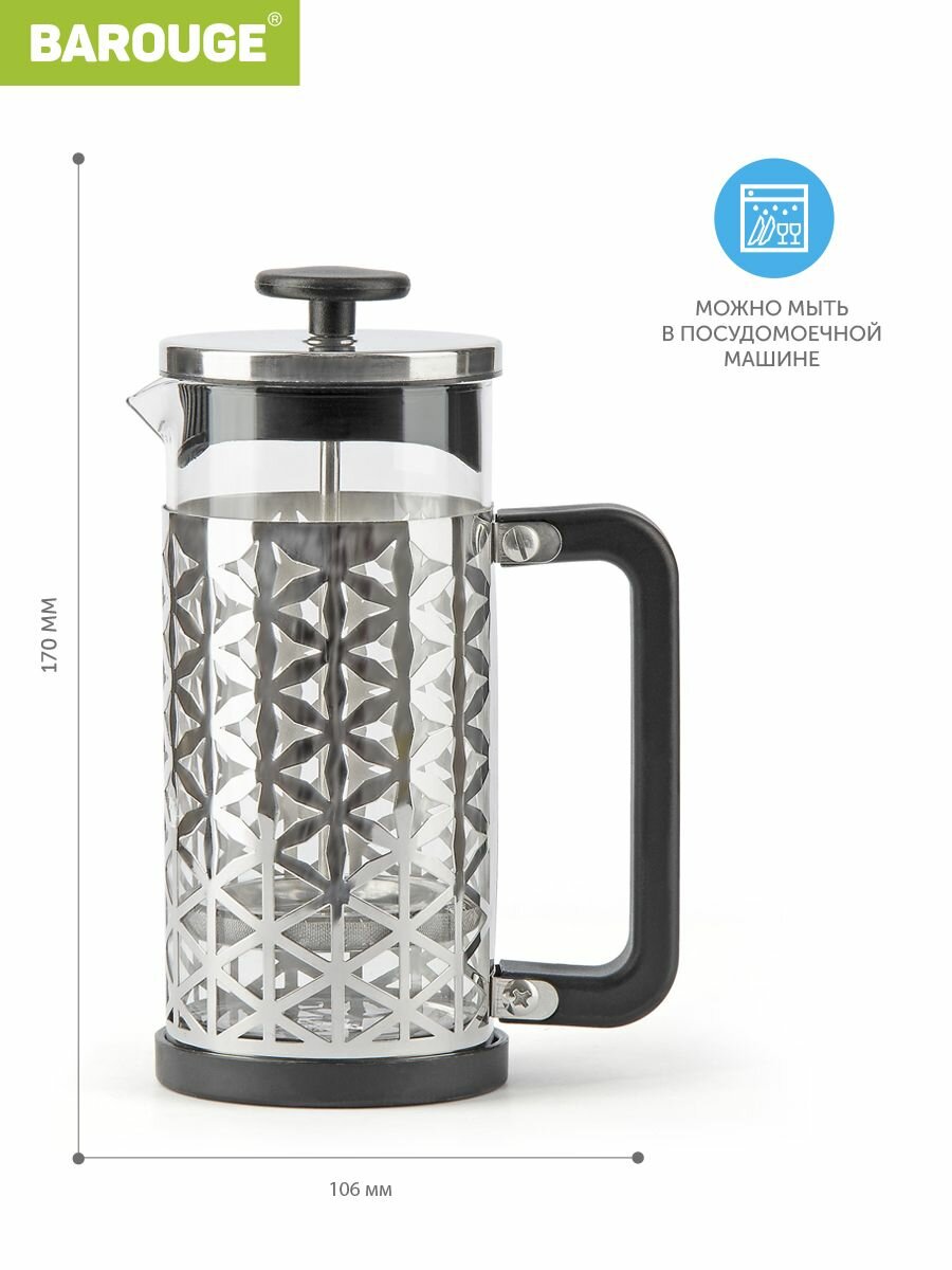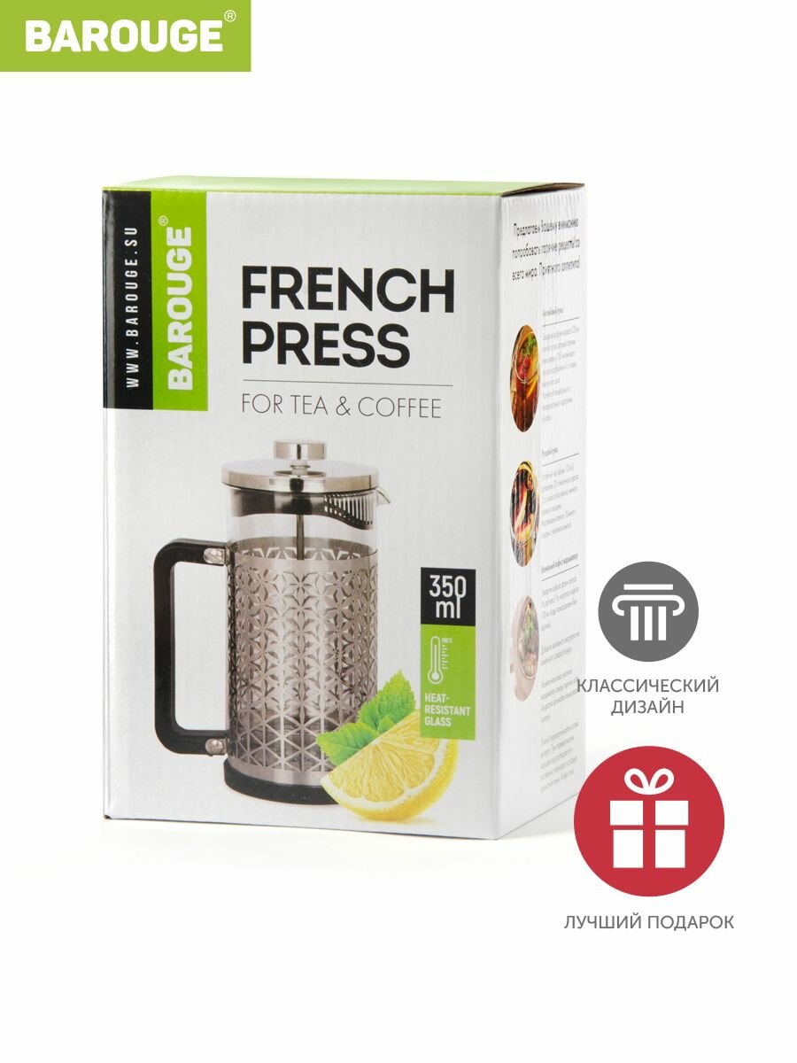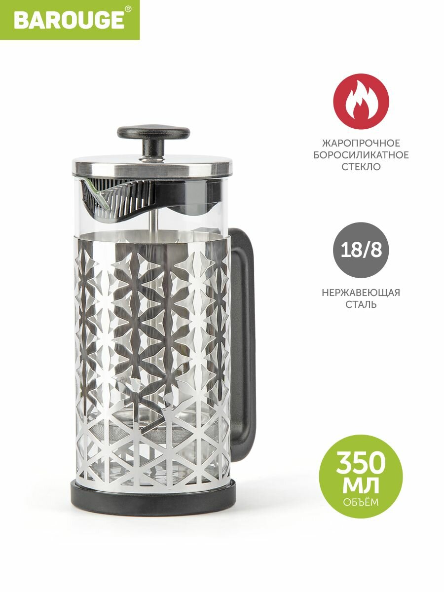 Френч-пресс Barouge с металлическим корпусом, цвет серебряный, 350 мл интересное: