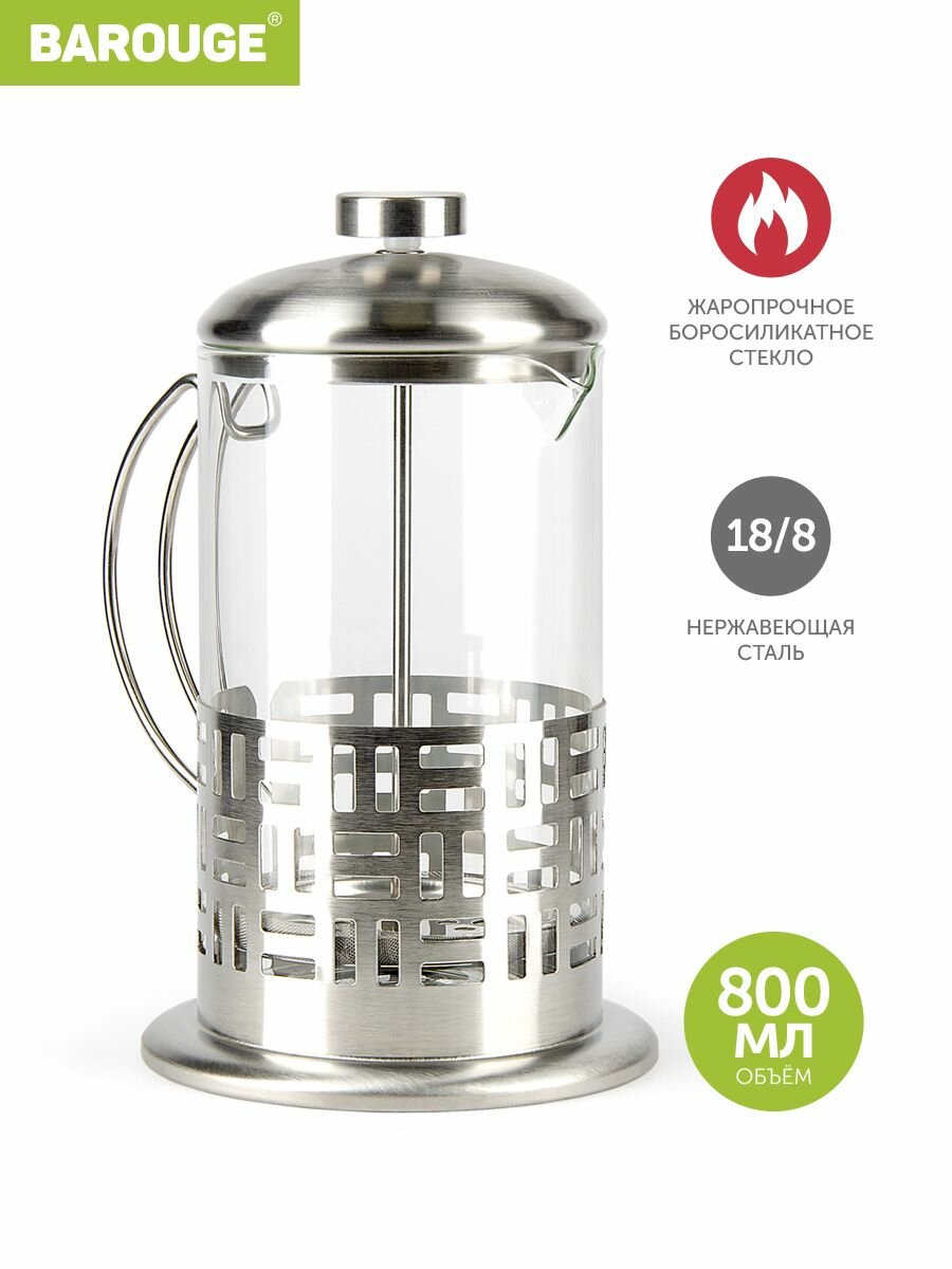 Френч-пресс Barouge Light с металлическим корпусом, цвет серебро, 800 мл интересное: