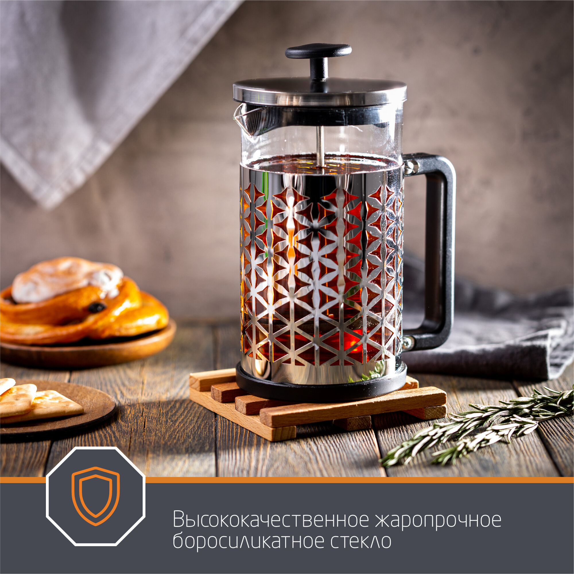 Френч-пресс Satoshi "Бордо", жаропрочное стекло, серебристый, 600 мл