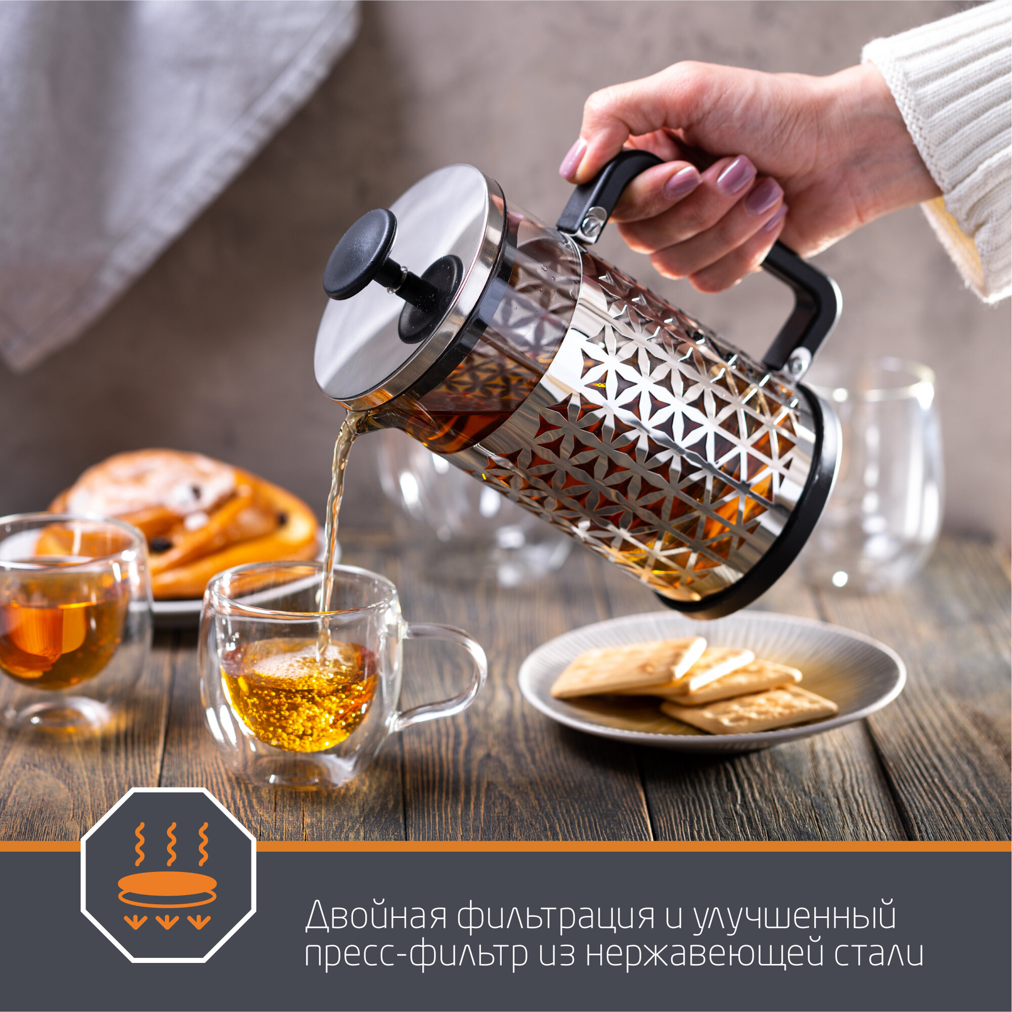 Купить Френч - пресс для чая и кофе из жаропрочного стекла в корпусе из нержавеющей стали Leonord Fantasie объем: 350 мл