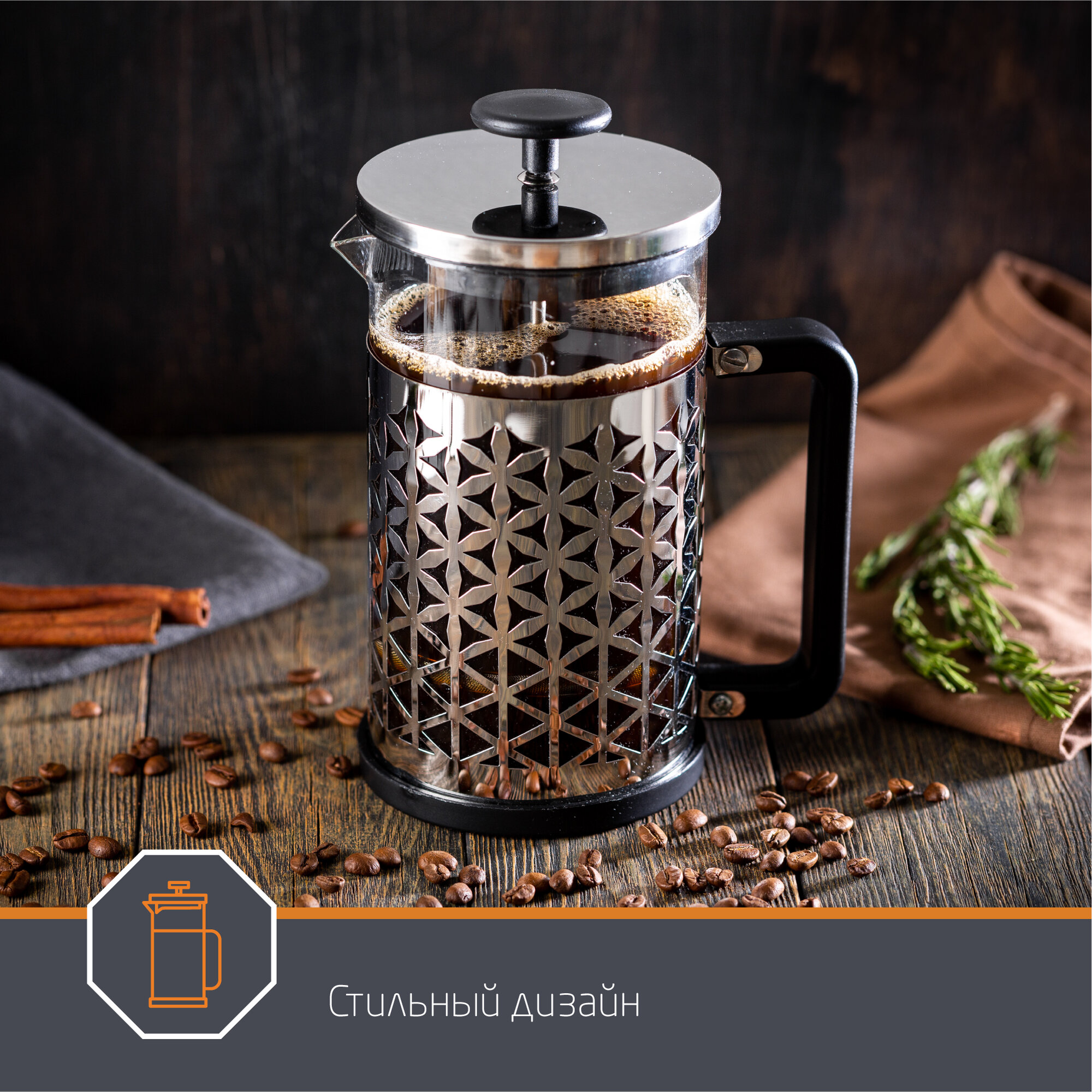 Френч-пресс 0.8 л, нержавеющая сталь, стекло, Fantasie, ч