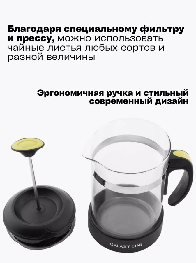 Френч-пресс для чая и кофе Galaxy LINE GL 9308, 0,85 л, фильтр нержавеющая сталь интересное: