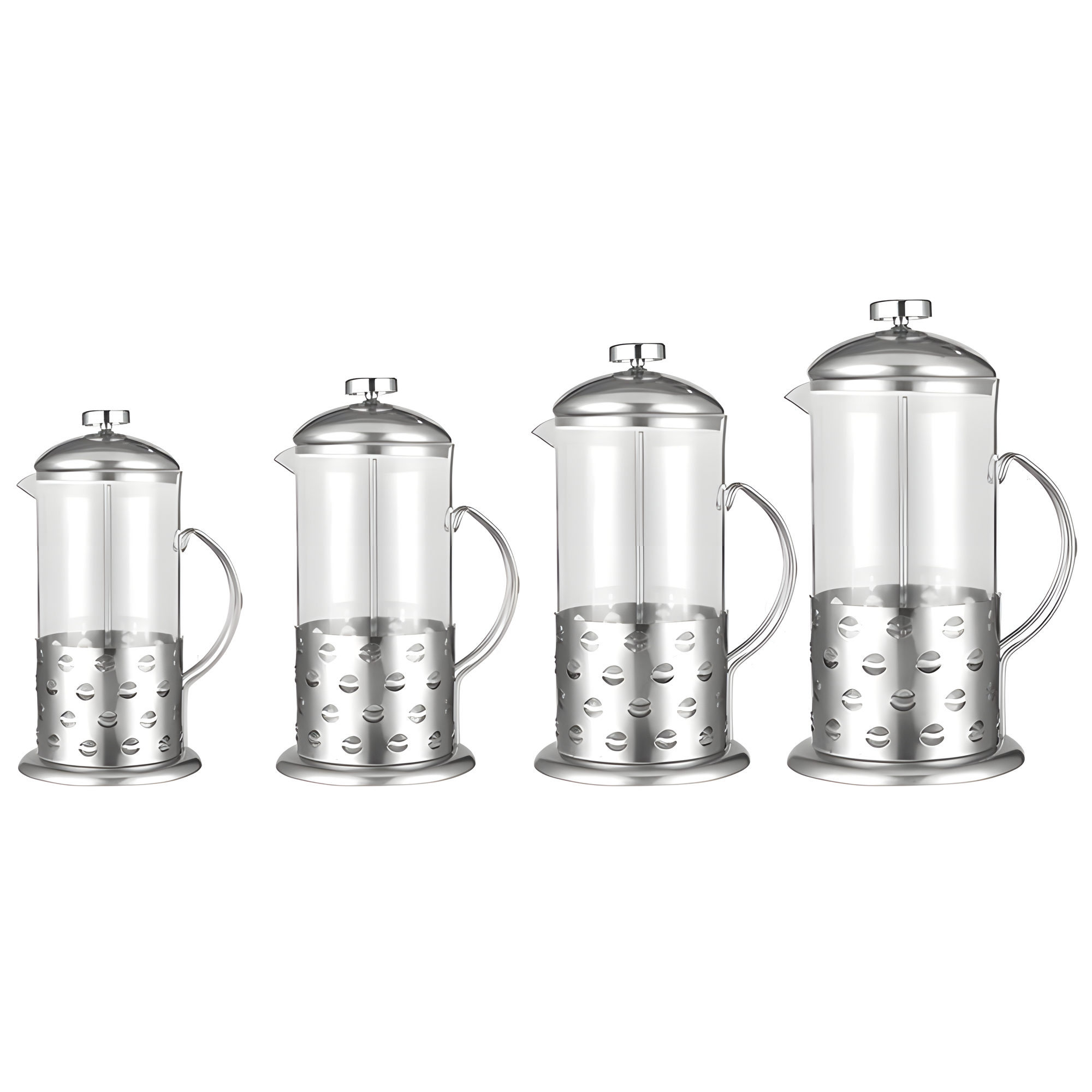 Купить Френч-пресс из стекла 350 мл MVQ FPGL350, подставка из нерж. стали, 90x110x190 мм