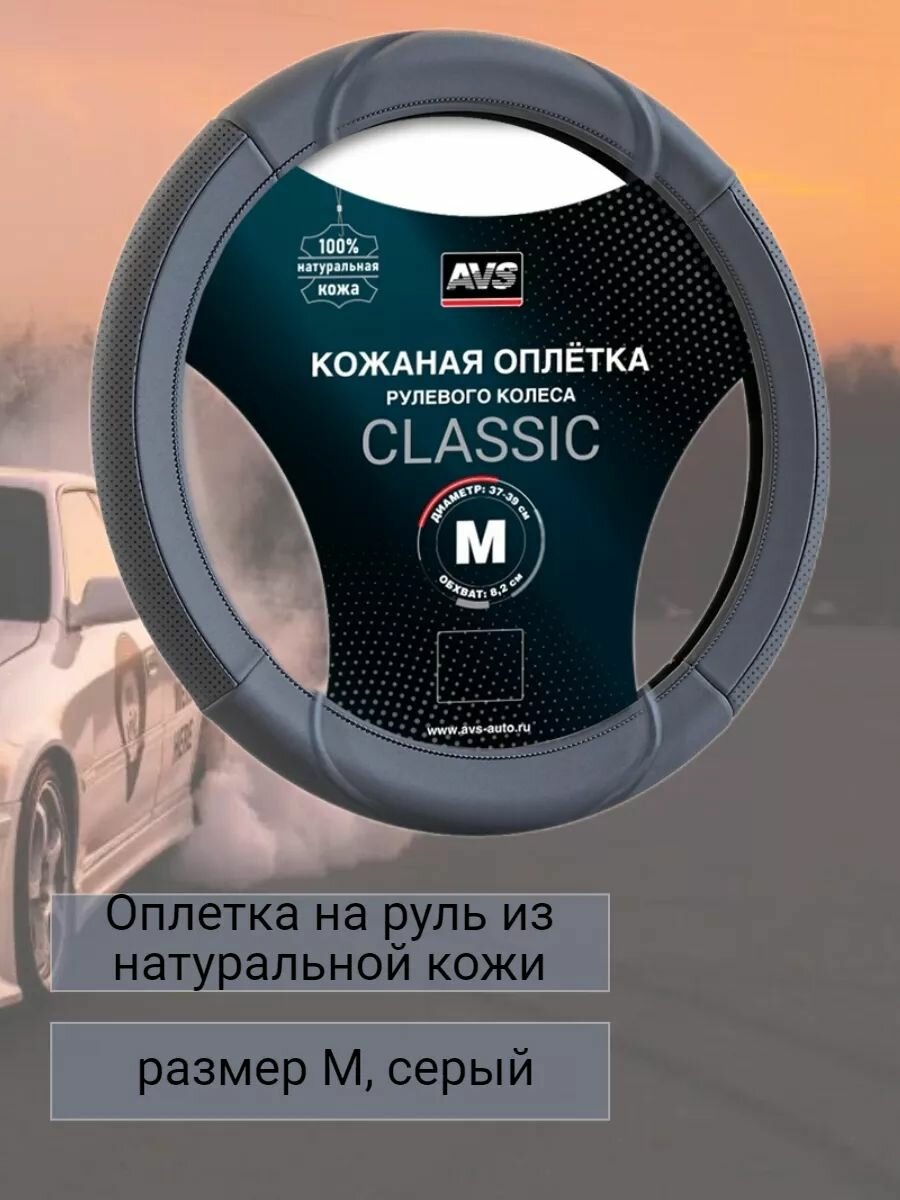 Оплетка на руль из натуральной кожи AVS GL-920M-GR (M, серый)