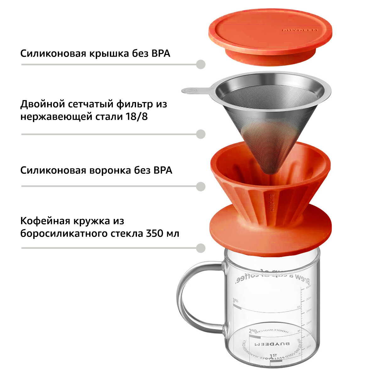 Набор для заваривания кофе BUYDEEM CD1024BO пуровер с воронкой и фильтром, кружка с мерной шкалой 350 мл интересное: