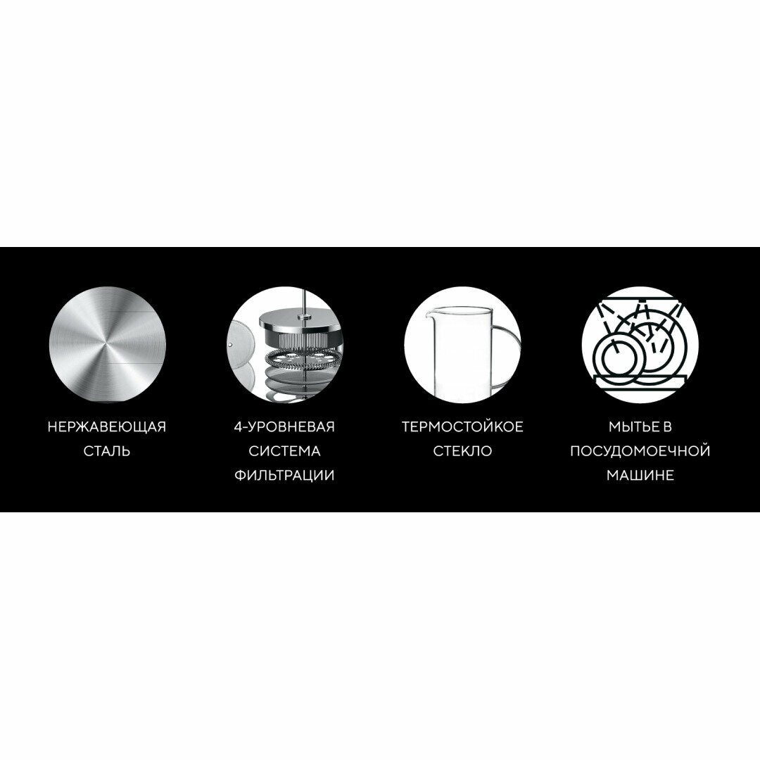 Френч-пресс Satoshi "Бордо", жаропрочное стекло, серебристый, 600 мл