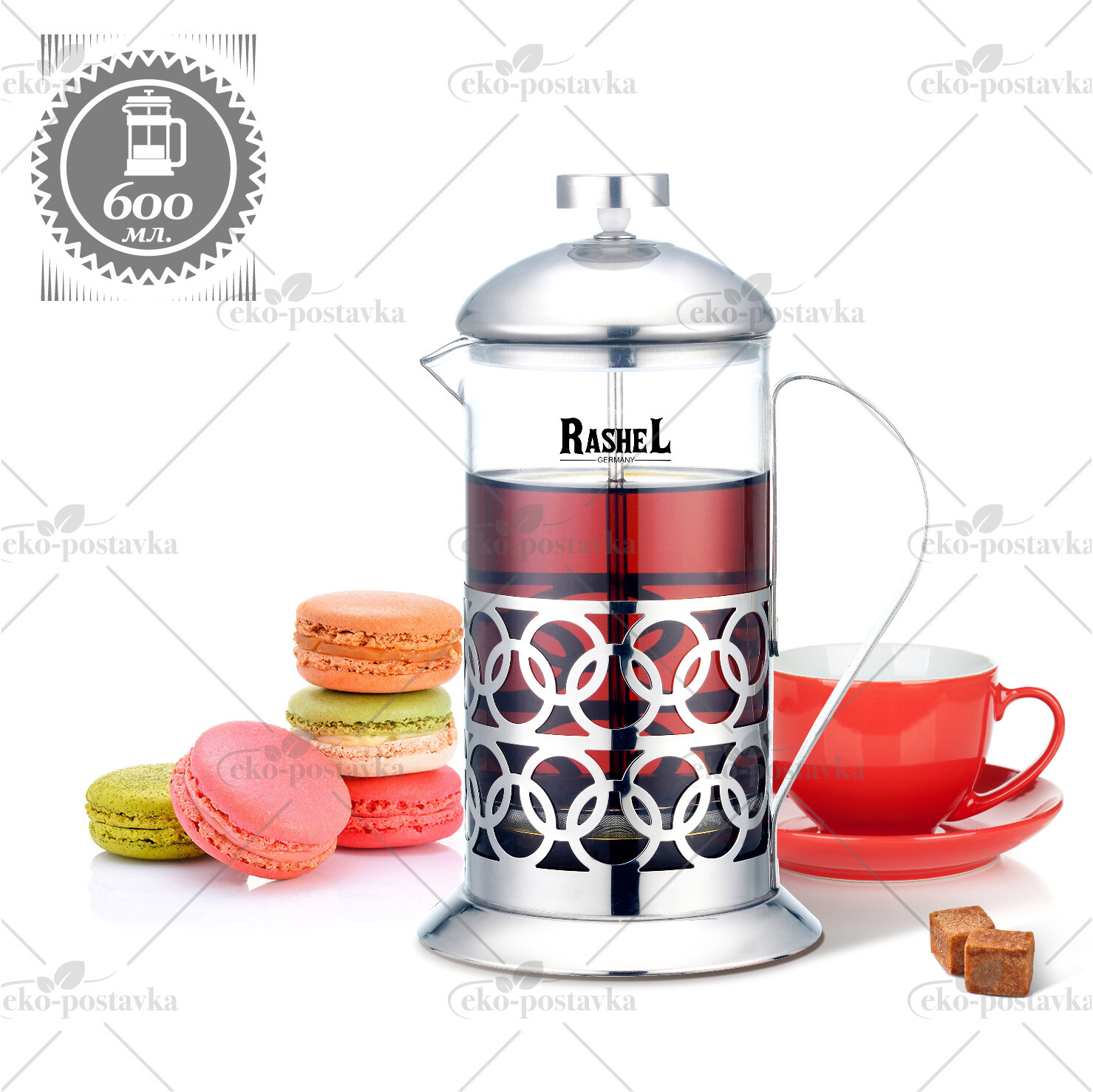 Купить Френч-пресс стеклянный Rashel из нержавеющей стали 600 мл