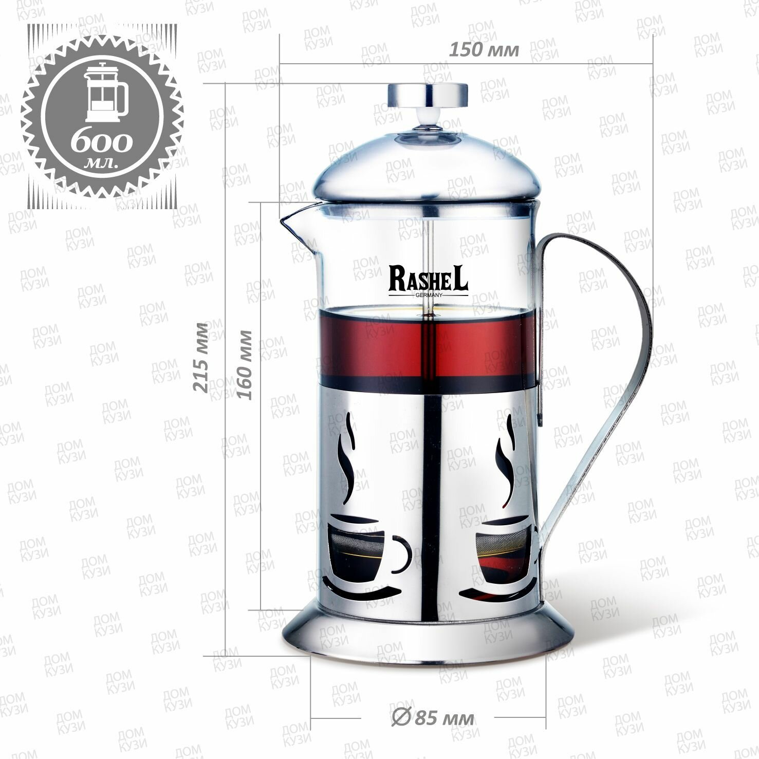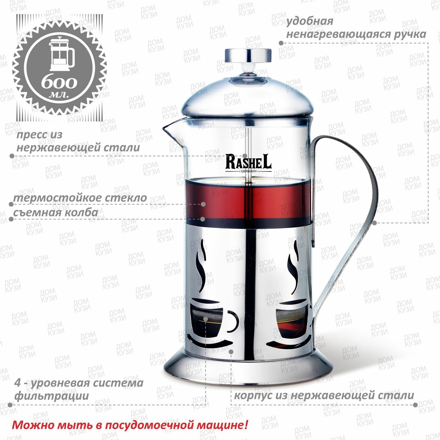 Купить Френч - пресс Rashel для чая, кофе 600мл, стеклянный заварник, чайник кофейник с прессом фильтром из нержавеющей стали для заваривания горячих напитков, трав, ягод