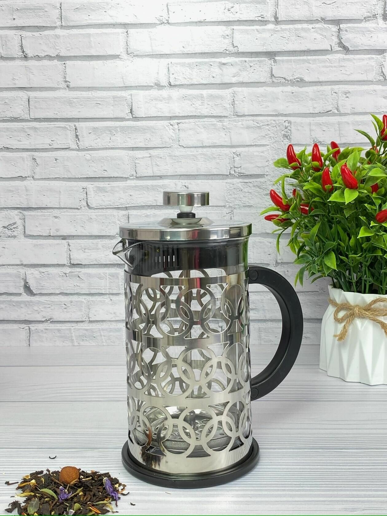 Френч-пресс Rashel М-6280 стеклянный для заваривания чая и кофе, из нержавеющей стали, 800 мл.