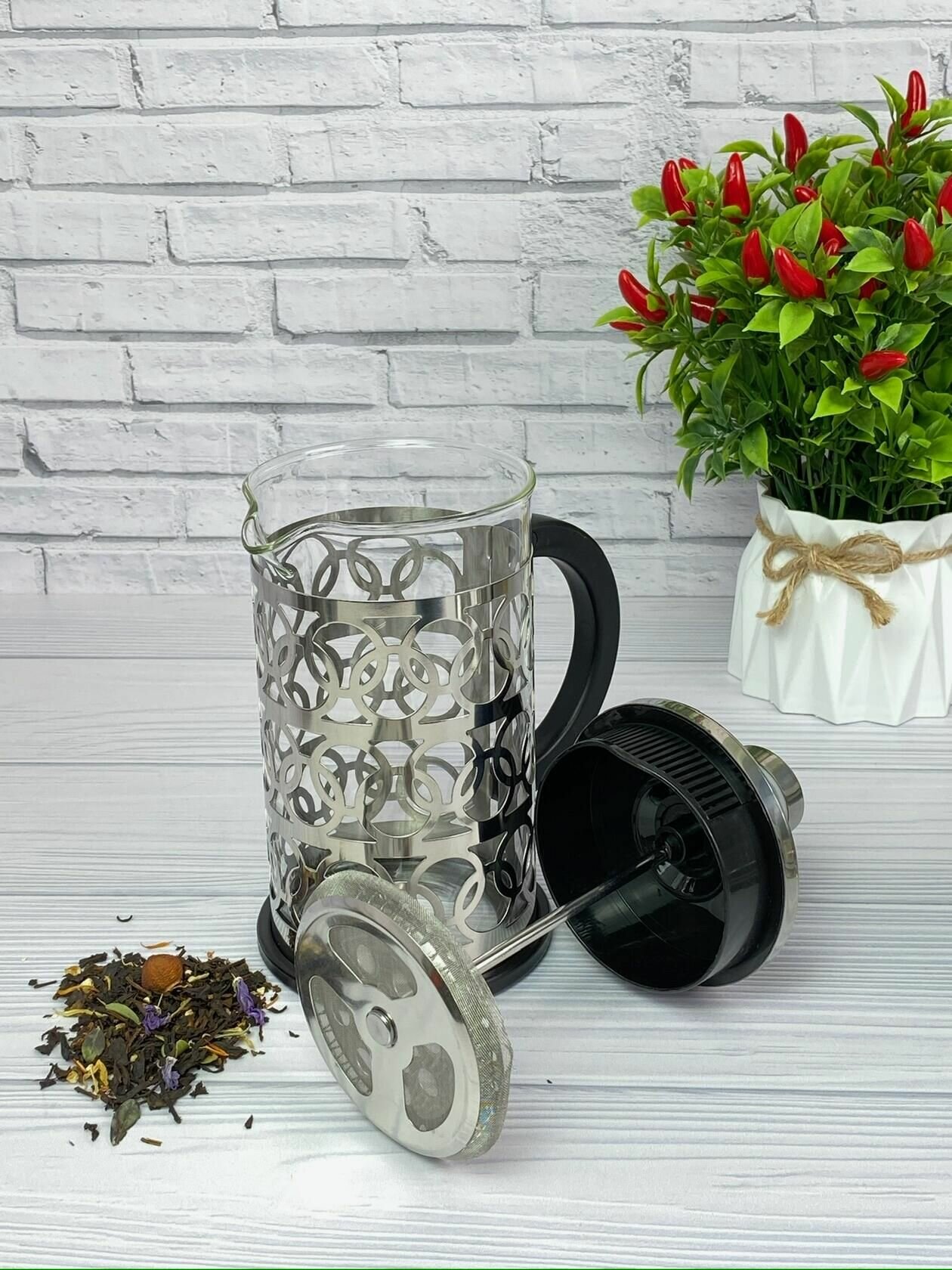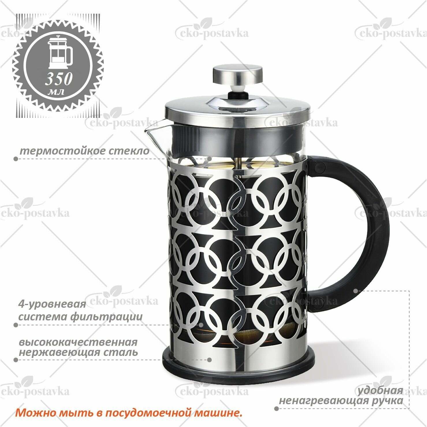 Френч - пресс Rashel для чая, кофе 350мл, стеклянный заварник, чайник кофейник с прессом фильтром из нержавеющей стали для заваривания горячих напитков, трав, ягод