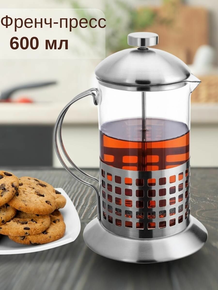 Френч пресс для кофе и чая, чайник заварочный стеклянный 600 мл