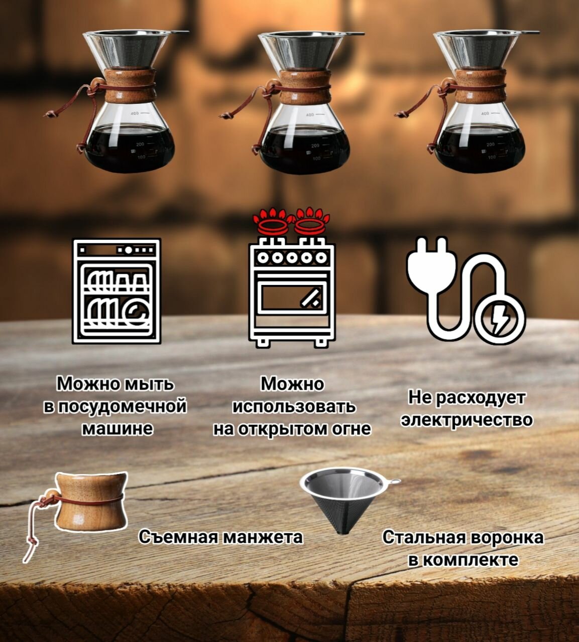 Кемекс для кофе, (Chemex), 400 мл, кофеварка с многоразовым фильтром интересное: