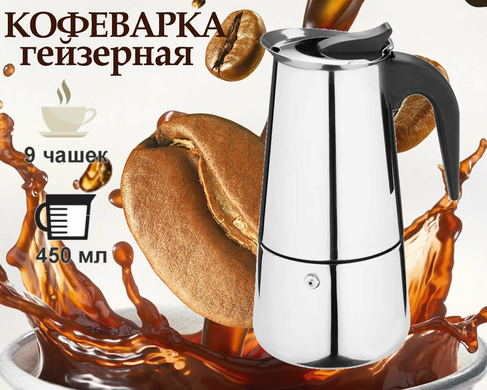 Купить Кофеварка гейзерная для приготовления кофе на плите, на 9 чашек, 450 мл