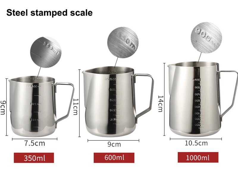 Кувшин для вспенивания молока из нержавеющей стали, 1000 Stamped scale