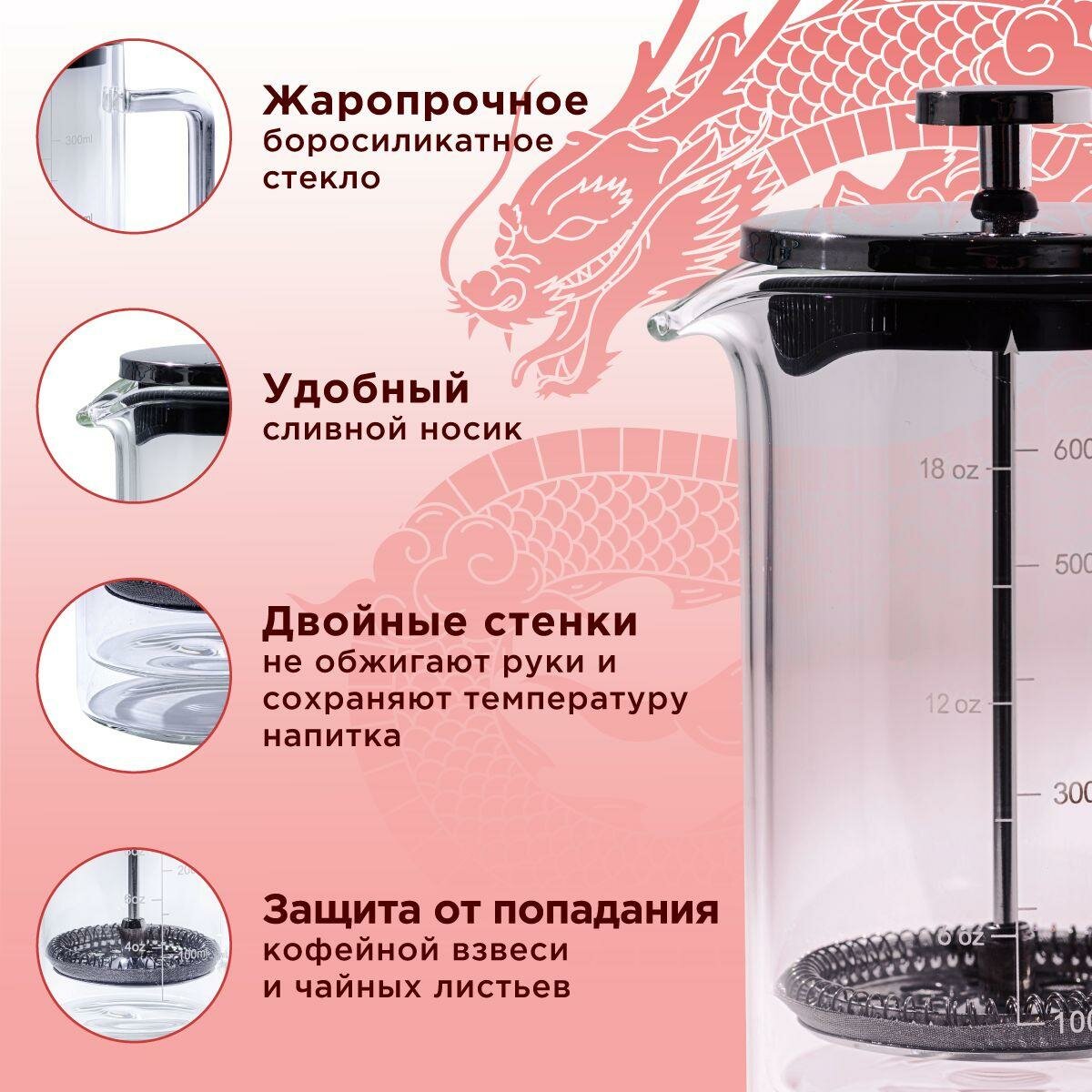 Френч-пресс Rise Double Wall, 600 мл, материал: стекло, цвет: прозрачный интересное: