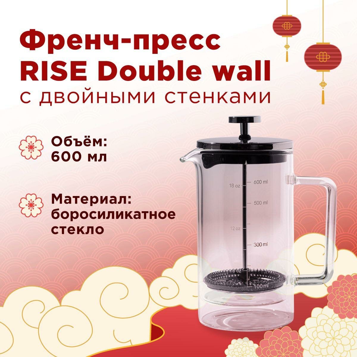 Френч-пресс Rise Double Wall, 600 мл, материал: стекло, цвет: прозрачный