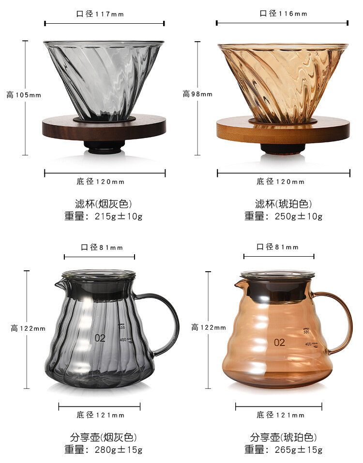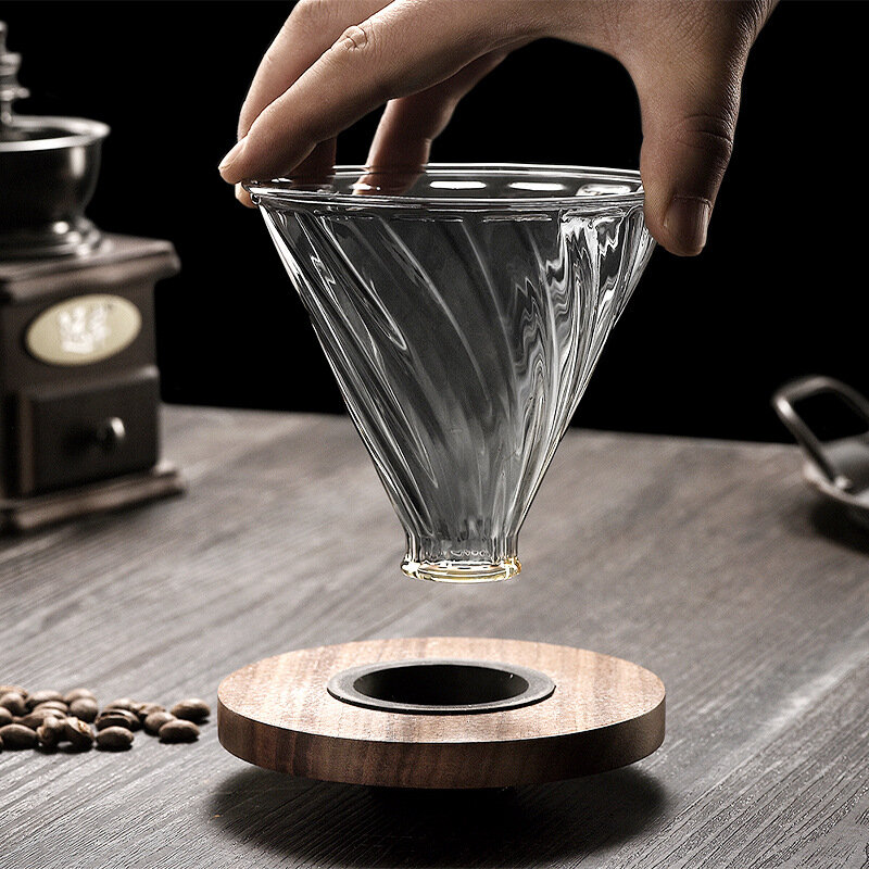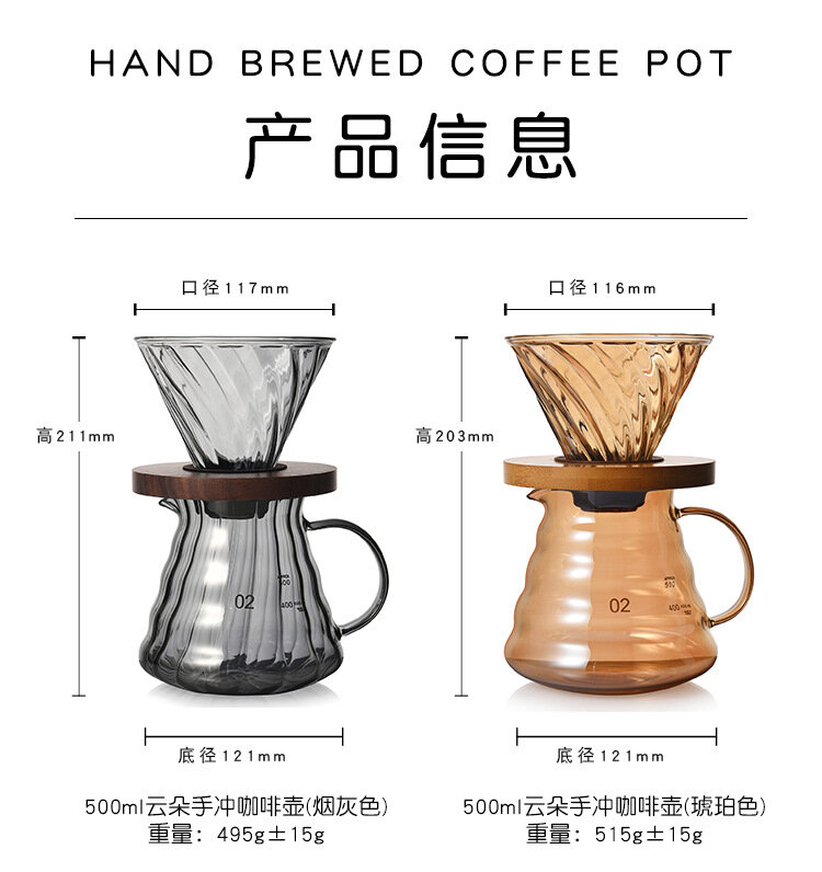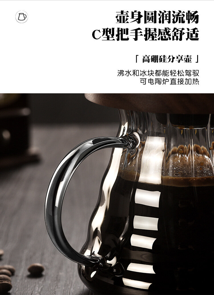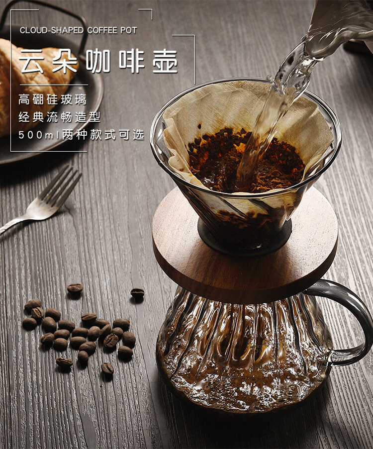 Кофейник Cloud pot, воронка с резьбой, ореховое дерево, термостойкий, прозрачный, черный