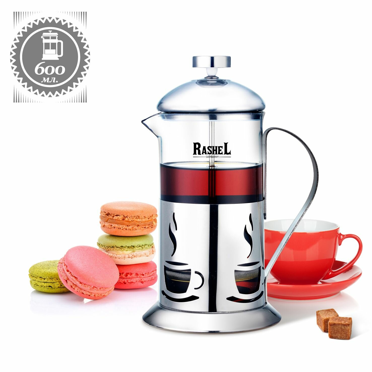 Френч-пресс стеклянный Rashel из нержавеющей стали 600 мл кофейник стеклянный интересное: