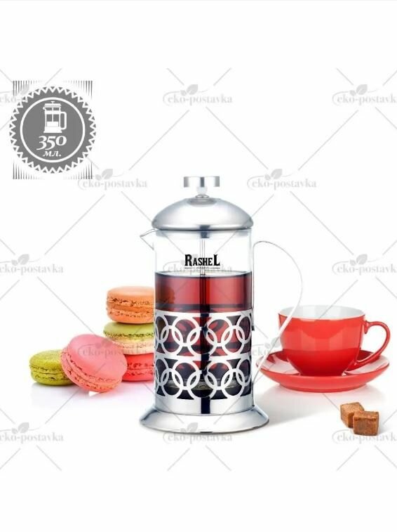 Купить Френч-пресс стеклянный прзрачный Rashel из нержавеющей стали 350 мл