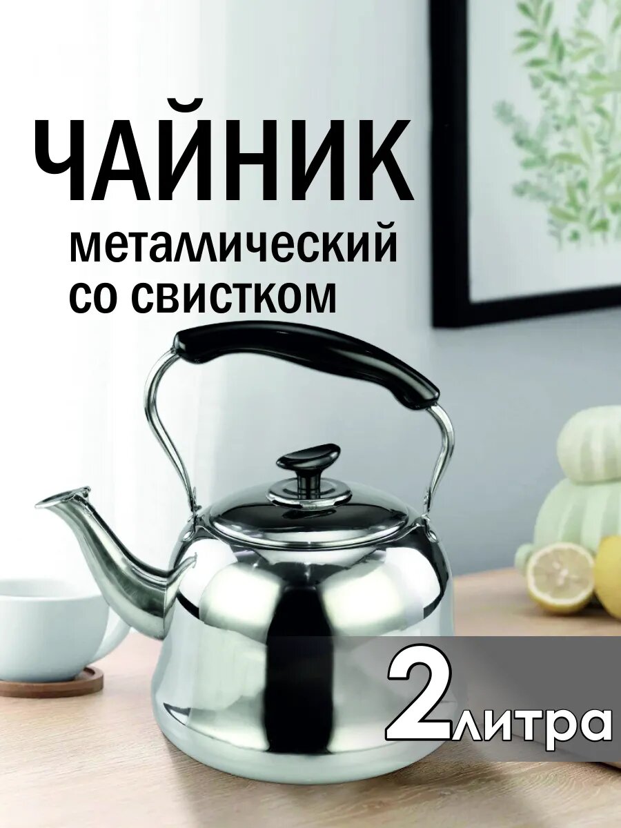 Чайник, нержавеющая сталь, со свистком, зеркальный, серый металлик, 2л интересное: