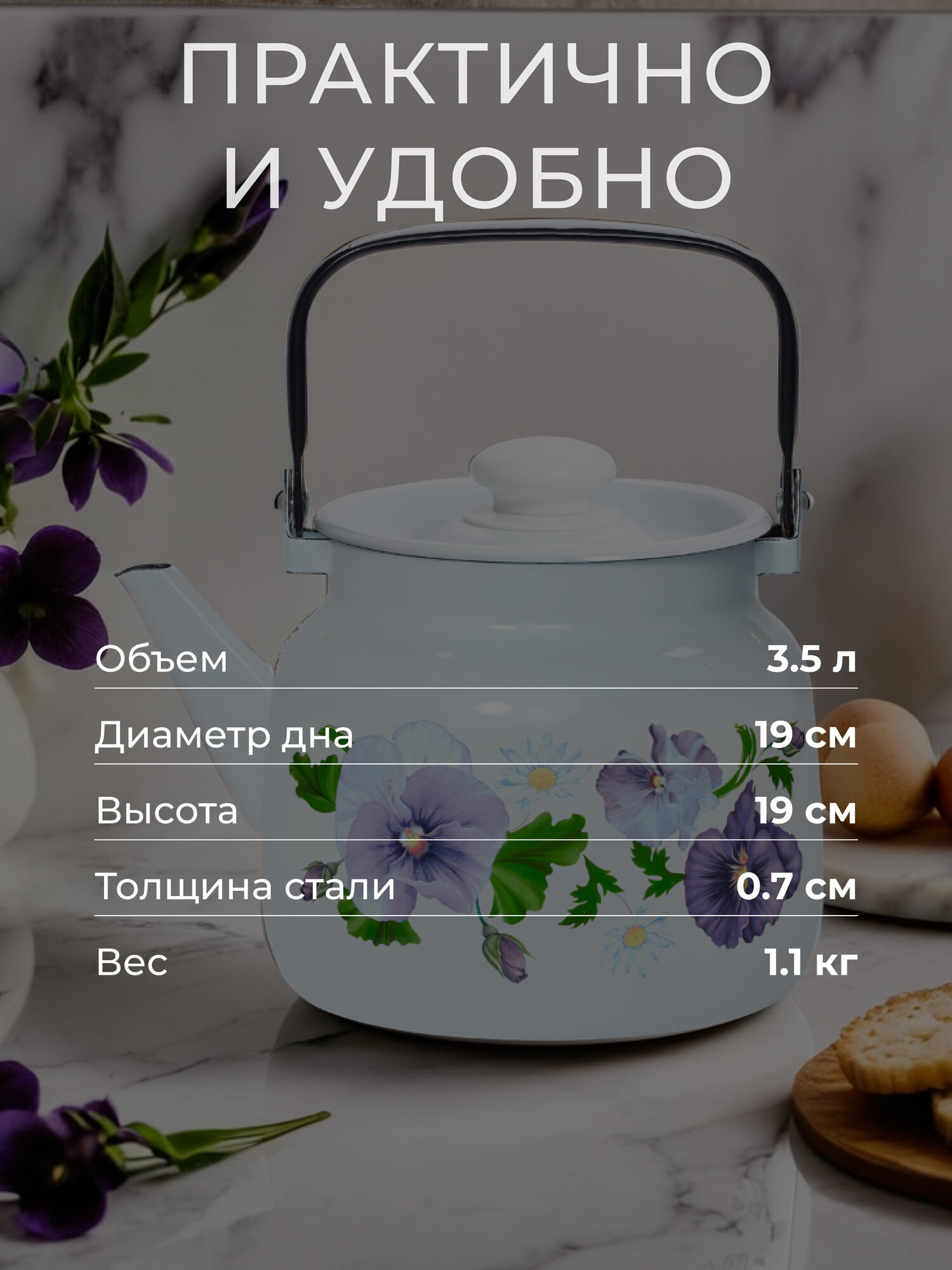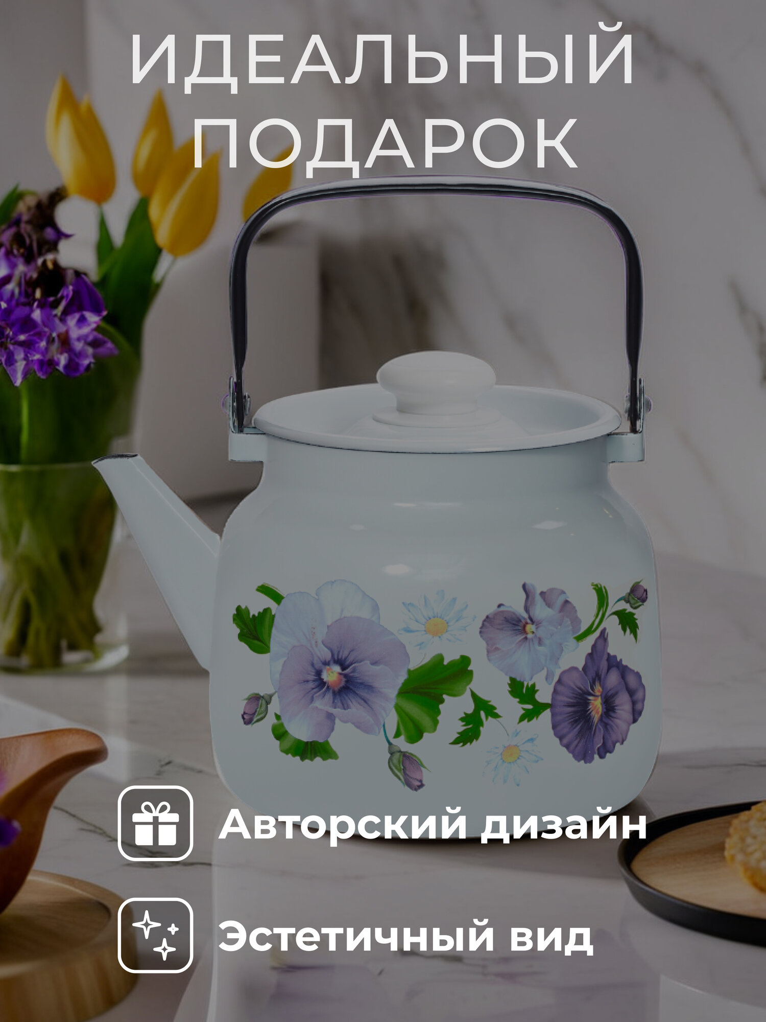 Купить Чайник для плиты Лысьвенские эмали Анютины глазки, чайник эмалированный 3,5 л
