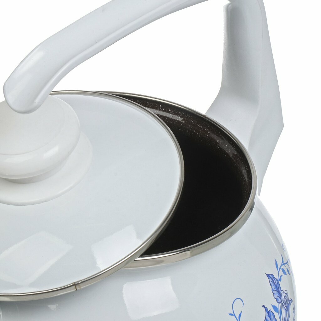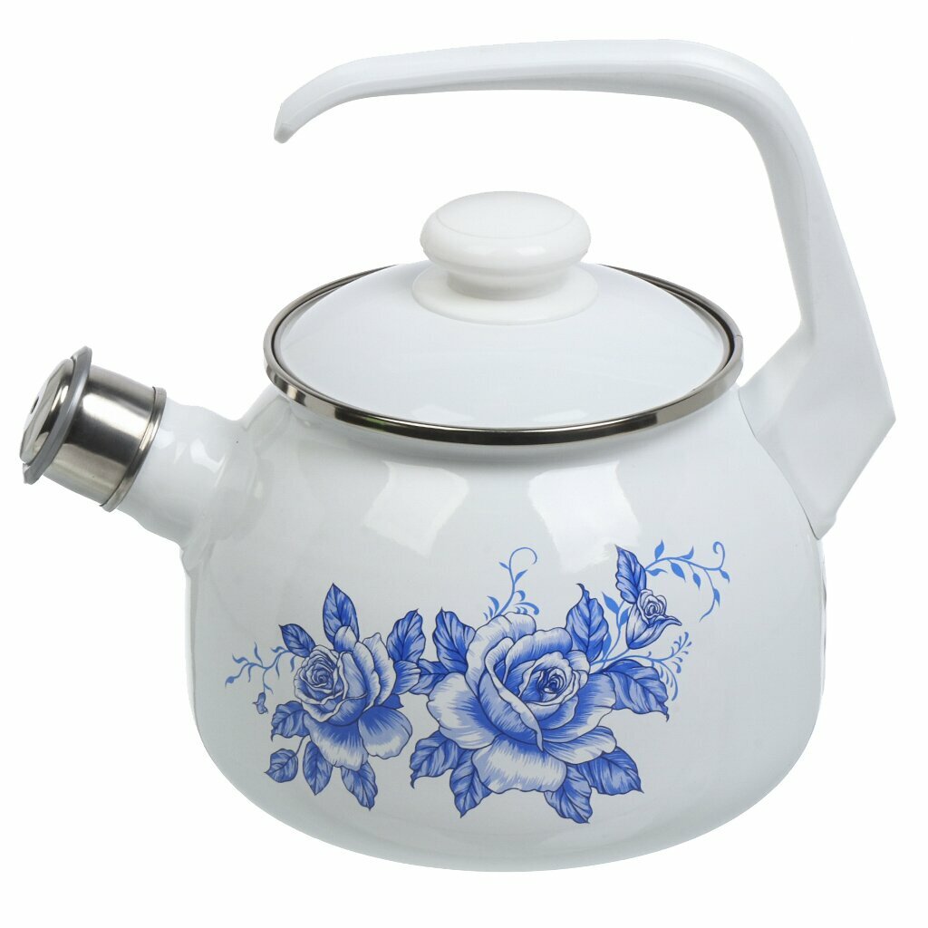 Купить Чайник сталь, эмалированное покрытие, 2.5 л, со свистком, с кнопкой, лзэп, Морозная роза, индукция, белый, С-2711АП/4Рч