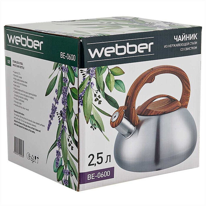 Чайник со свистком Webber BE-0600 из нержавеющей стали 2.5л, со свистком, сатин интересное:
