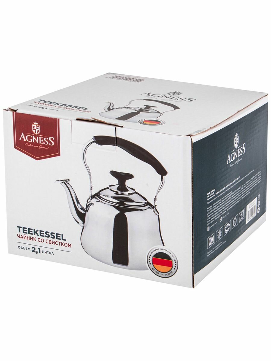 Чайник Agness, со встроенным свистком, 2,1 л, для всех видов плит интересное: