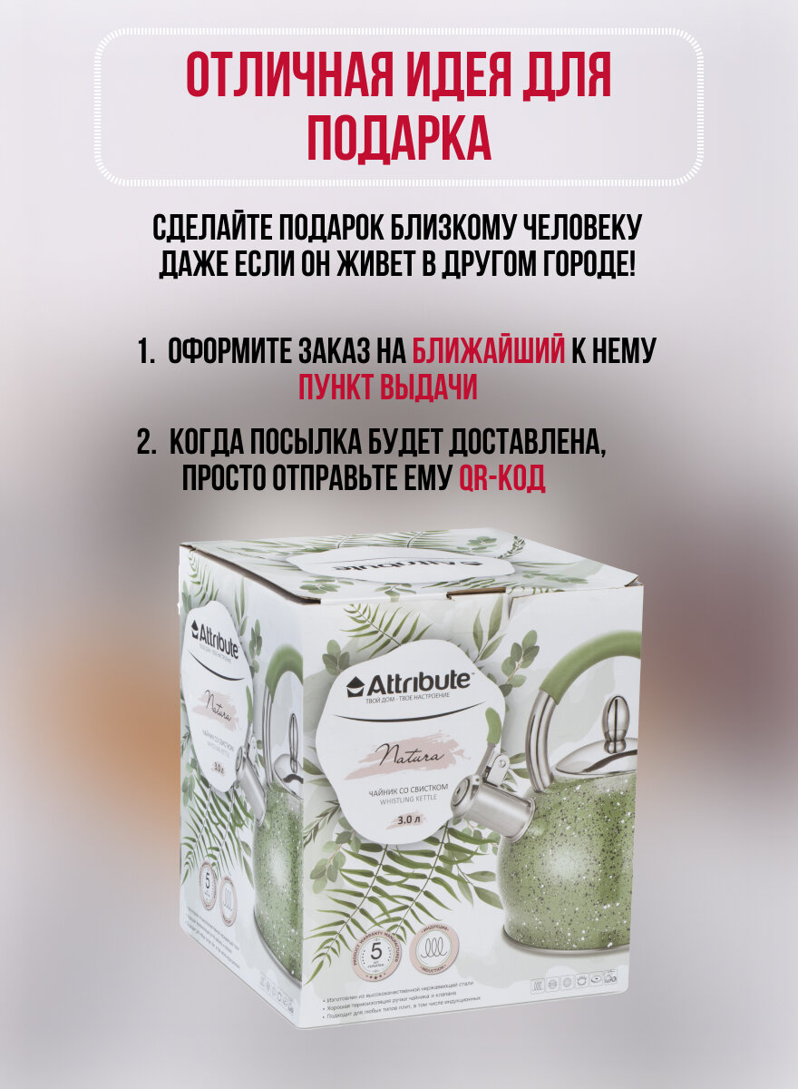 Чайник со свистом Attribute NATURA зеленый 3л, для всех видов плит интересное: